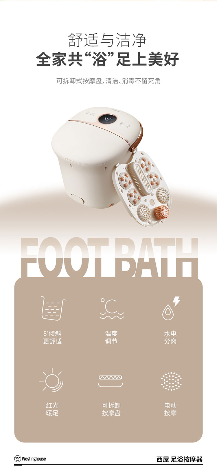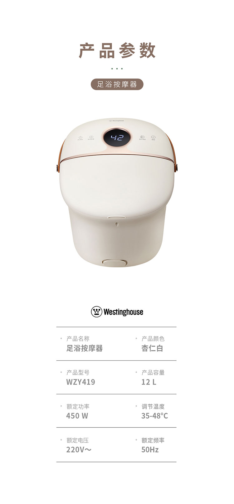 商品名称:(世星阳光)+WY西屋 足浴按摩器 12L WZY419 8°倾斜躺泡不硌脚更舒服