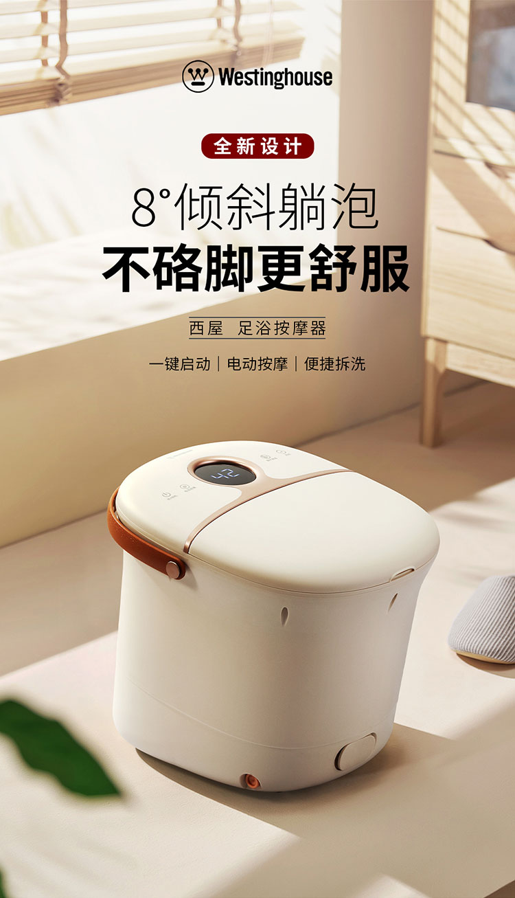 (世星阳光)+WY西屋 足浴按摩器 12L WZY419 8°倾斜躺泡不硌脚更舒服