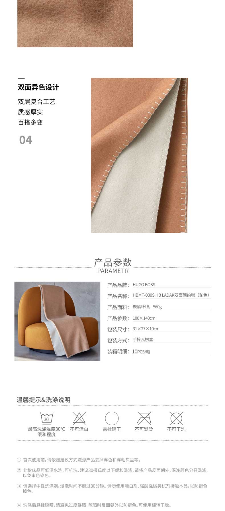 商品名称:(世星阳光)+HUGO BOSS LADAK双面简约毯驼色 毛毯 HBMT-030S 100*140cm