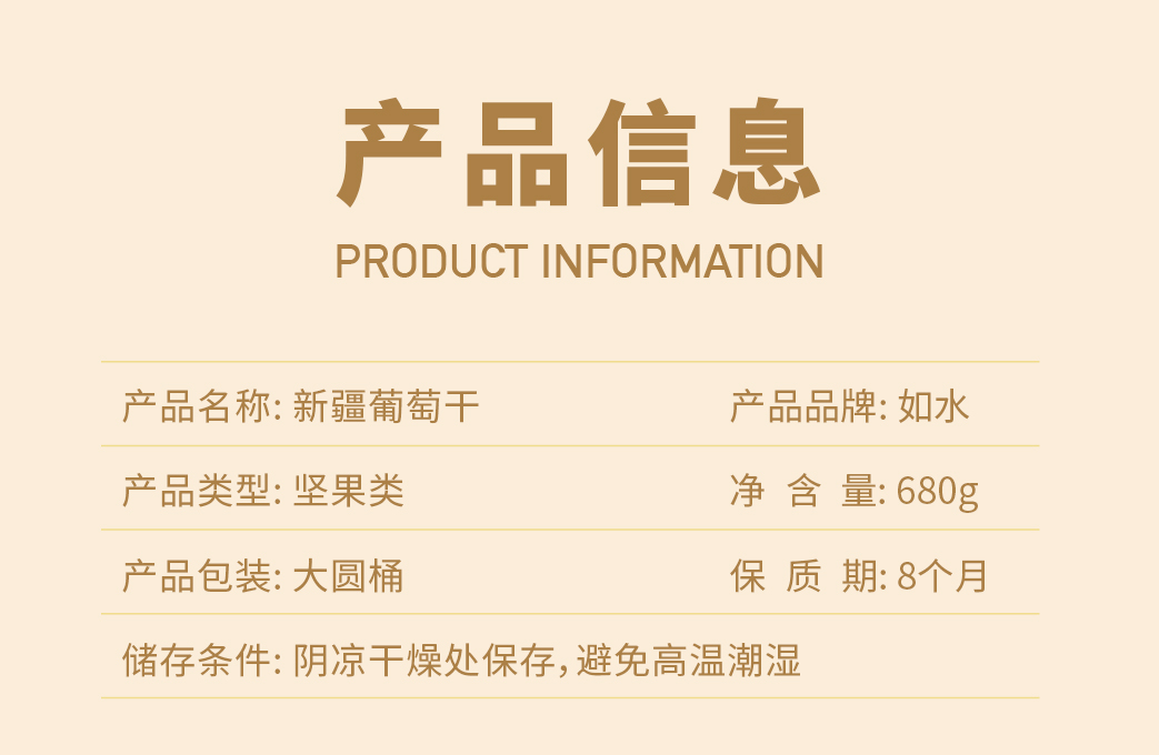 商品名称:(超运·禾贸)如水新疆葡萄干680g 坚果果干休闲零食