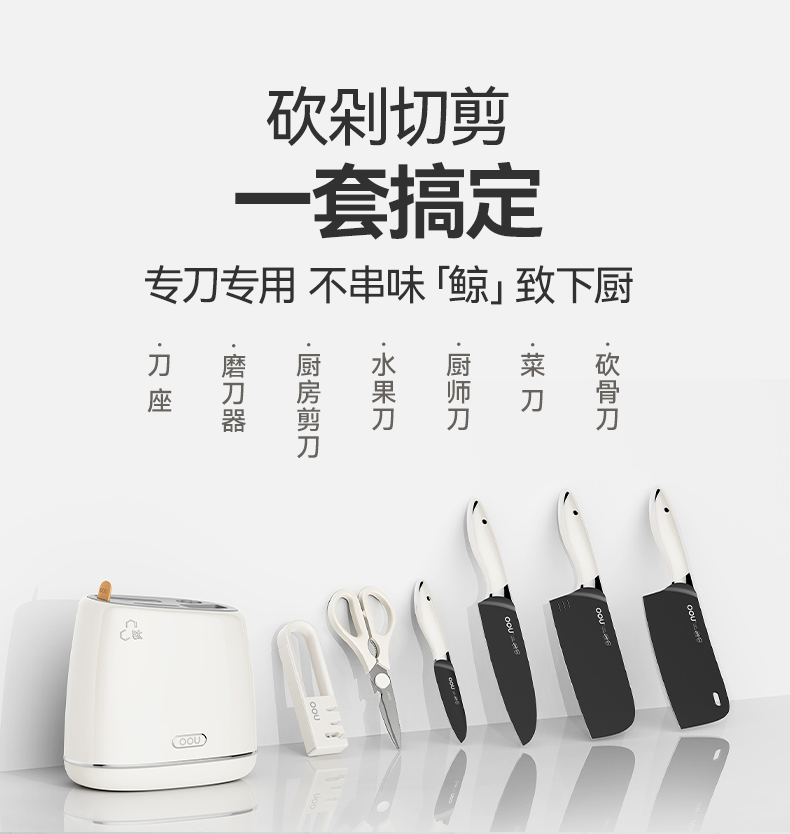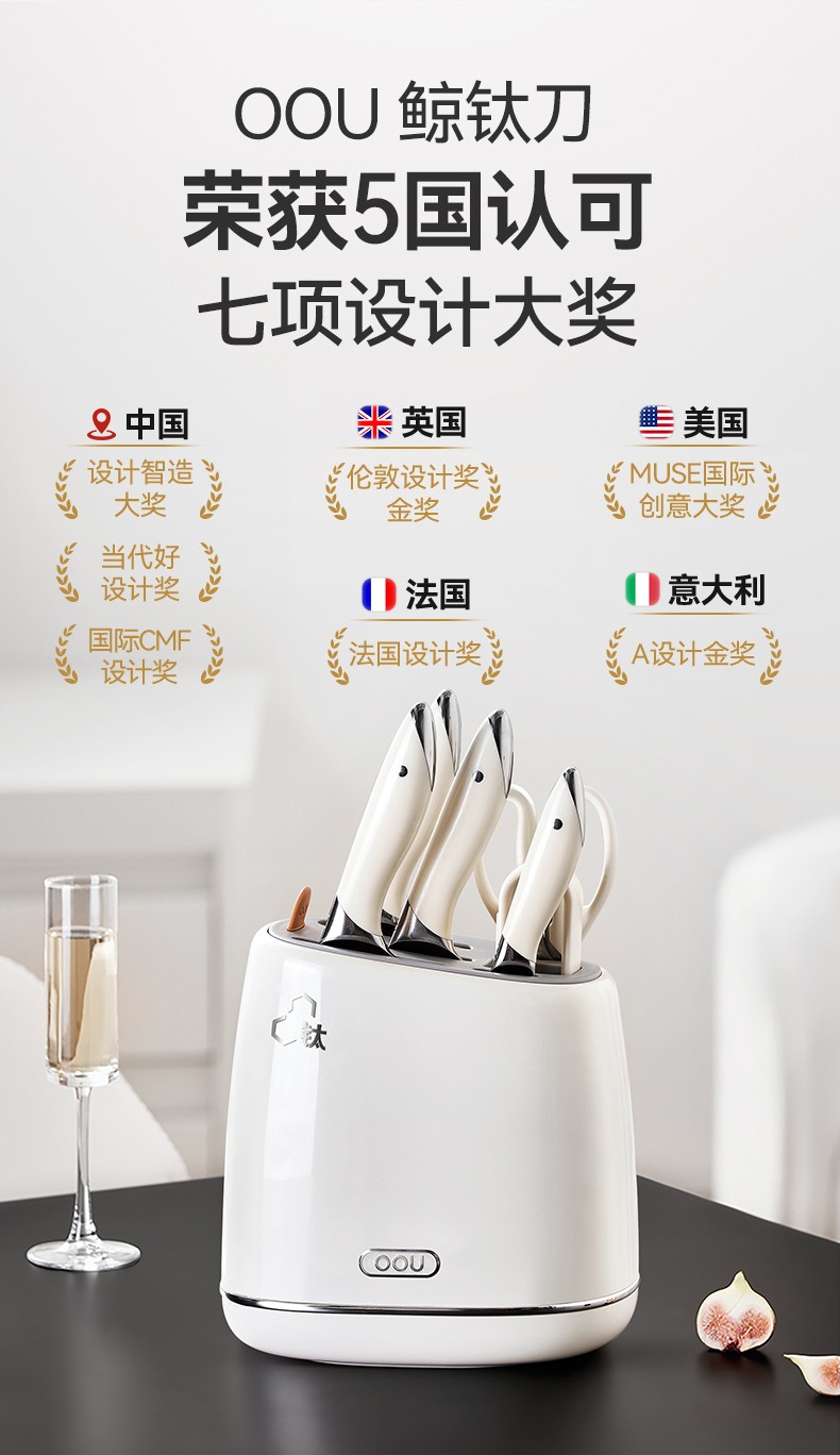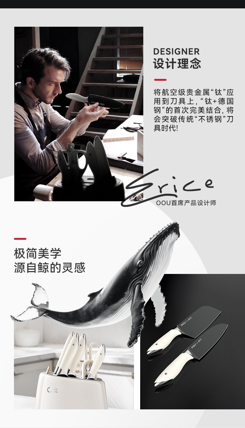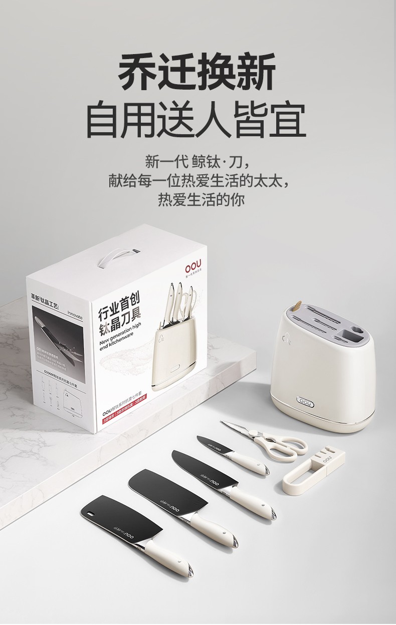(超运·禾贸)OOU DJ0091 鲸钛系列抗菌七件套 德国钢材刀具全套厨具套装【鲸钛】抗菌率99.9%3倍锋利