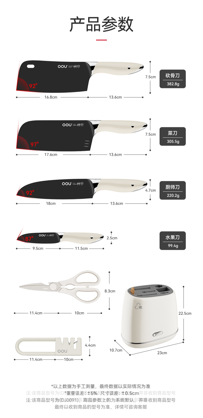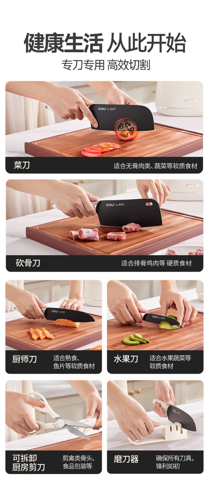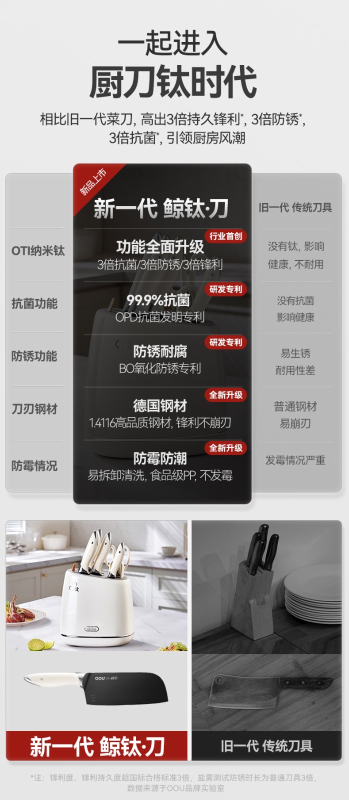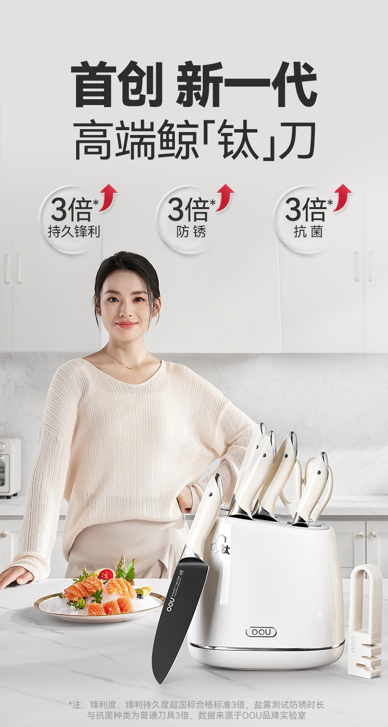 商品名称:(超运·禾贸)OOU DJ0091 鲸钛系列抗菌七件套 德国钢材刀具全套厨具套装【鲸钛】抗菌率99.9%3倍锋利