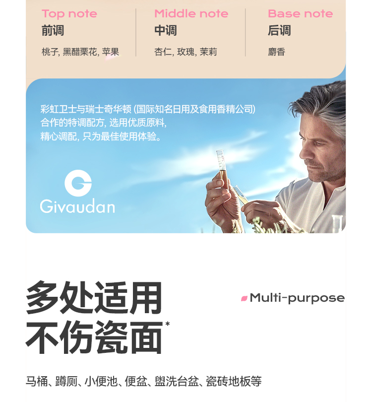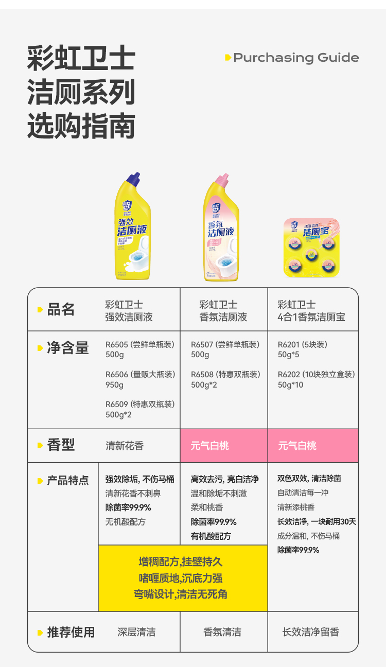 商品名称:(世星阳光)+彩虹卫士 香氛洁厕液 500g*4瓶 R6508-2 高效去污 亮白洁净 柔和桃香