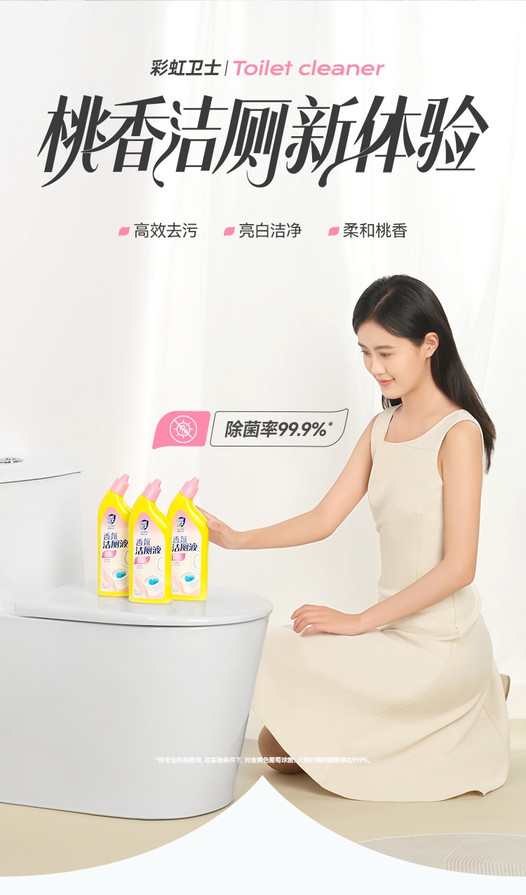 (世星阳光)+彩虹卫士 香氛洁厕液 500g*4瓶 R6508-2 高效去污 亮白洁净 柔和桃香
