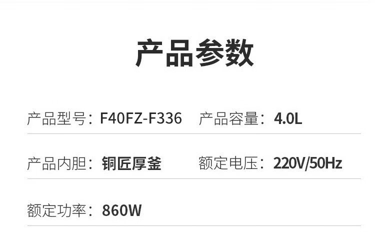 商品名称:(世星阳光)+九阳电饭煲 4L 40FZ-F336 家用智能预约电饭锅