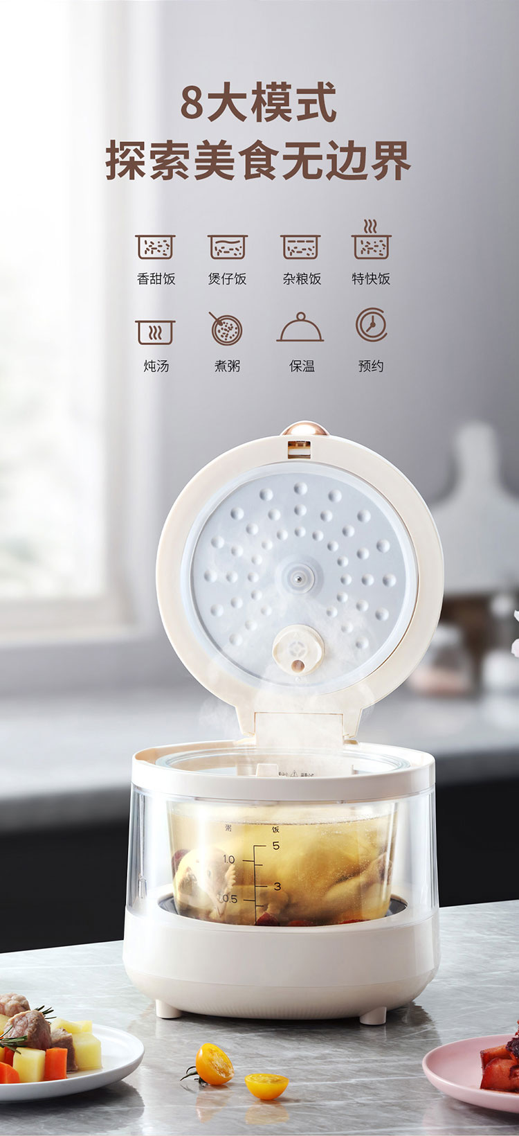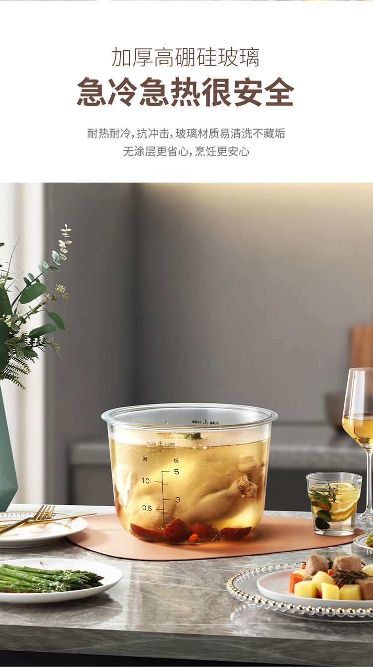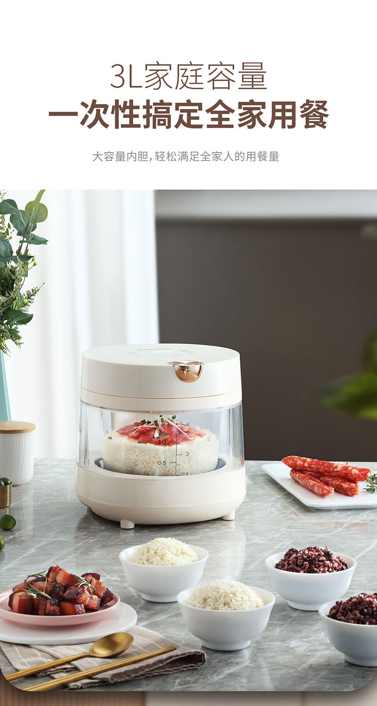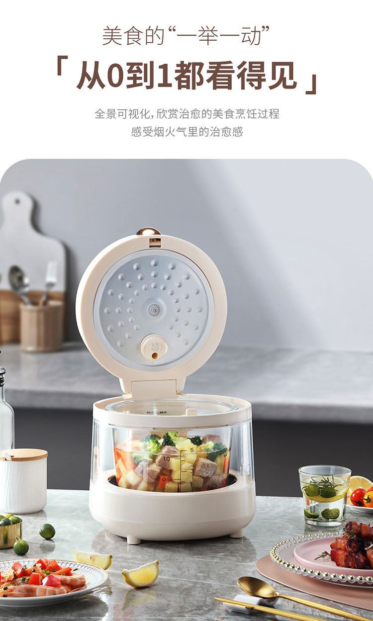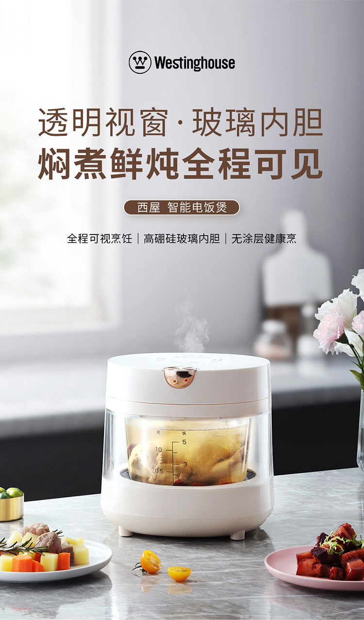 (世星阳光)+WY西屋 智能电饭煲 3L WRC010 透明视窗 玻璃内胆 焖煮鲜炖全程可见