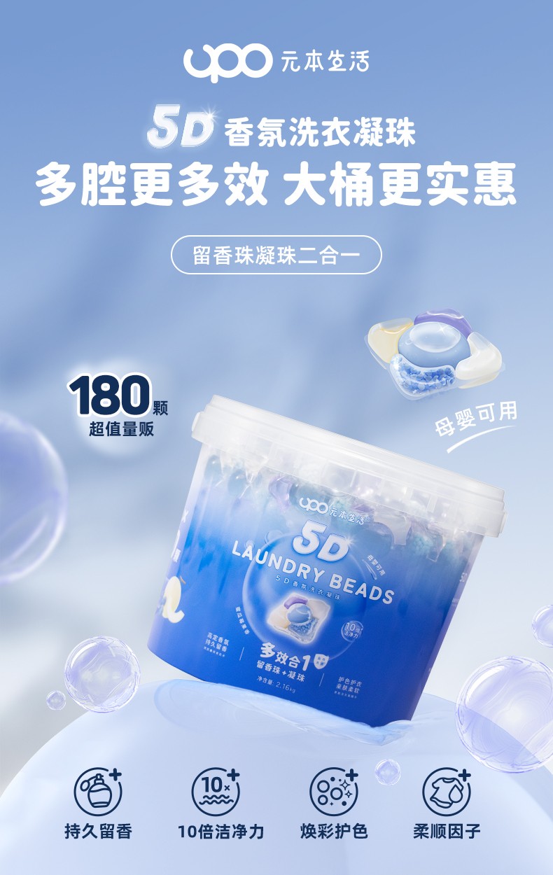 商品名称:(巨邦佑)BJ+UPO元本生活 5D香氛洗衣凝珠180颗 小雪山留香珠洗衣持久留香味护衣物香水柔顺凝珠除螨