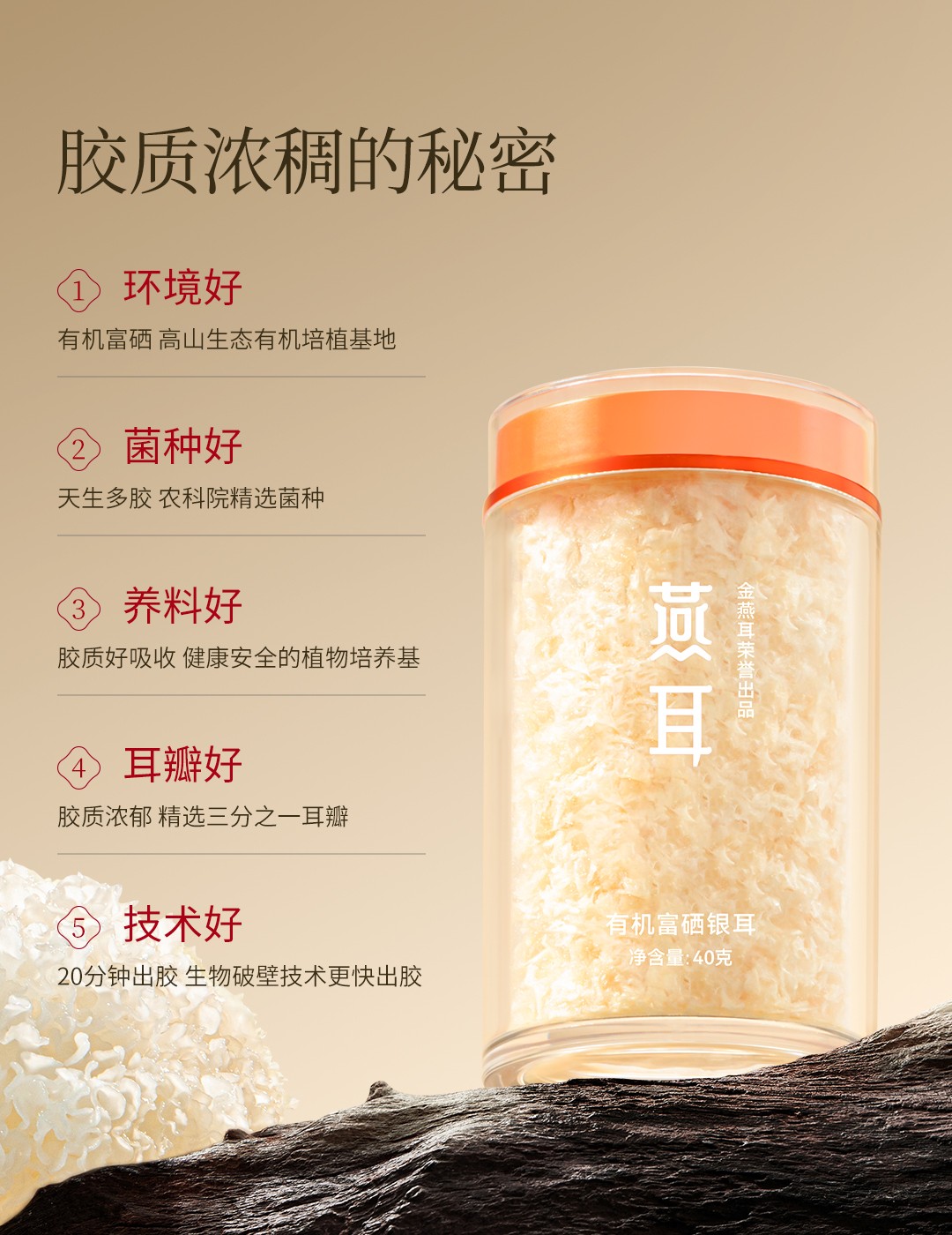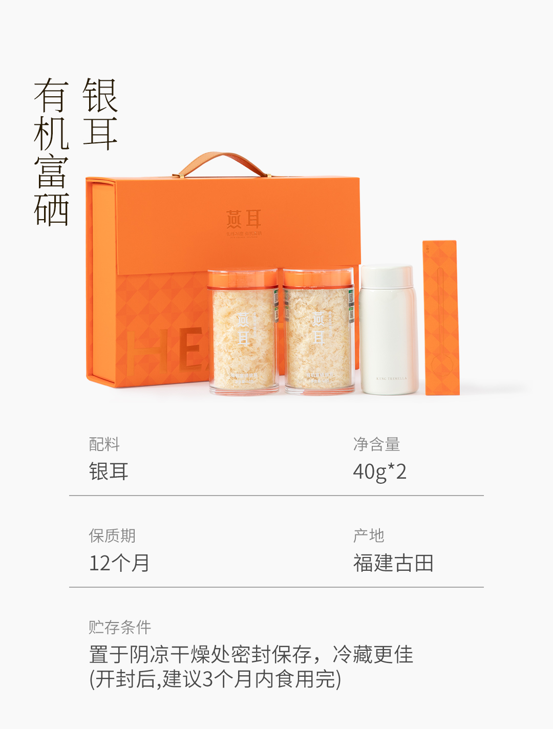 商品名称:(汇景缘)金燕耳Y银耳40g双罐装礼盒Y03 有机即食银耳羹免洗免煮冲泡