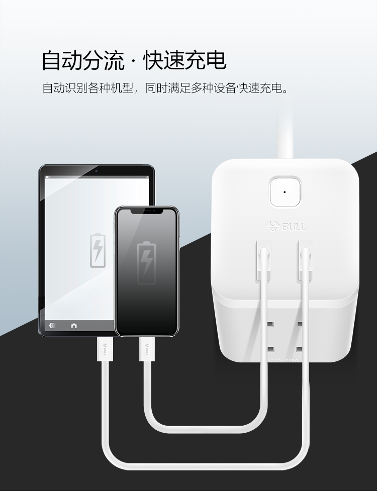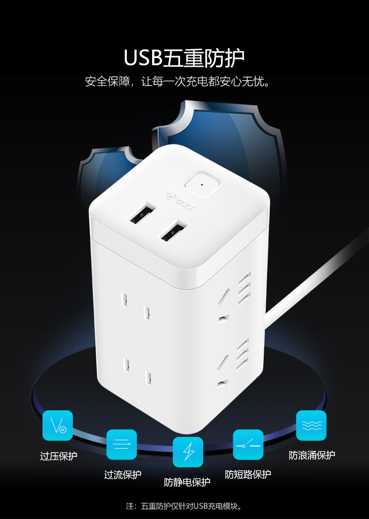 (超运·禾贸)公牛(BULL) 公牛星球插座GNV-U8123Q 插线板插排排插接线板