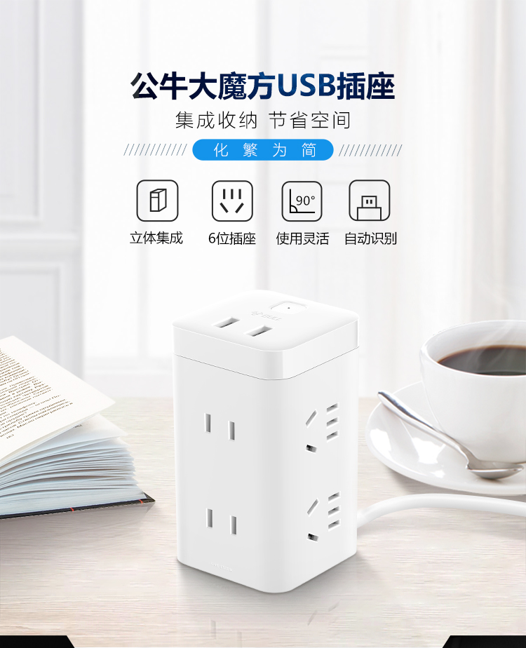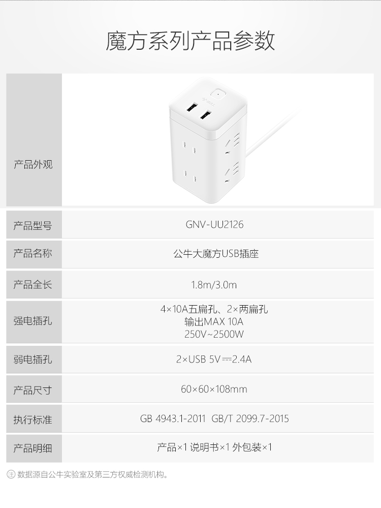 商品名称:(超运·禾贸)公牛(BULL) 白色大魔方USB插座 GNV-UU2126 全长3米总控开关 插线板插排排插接线板