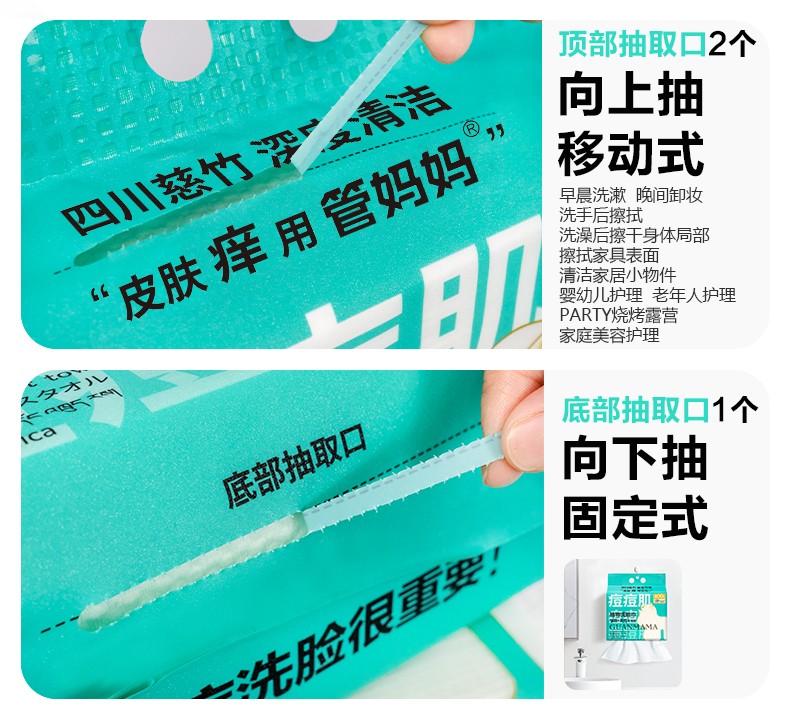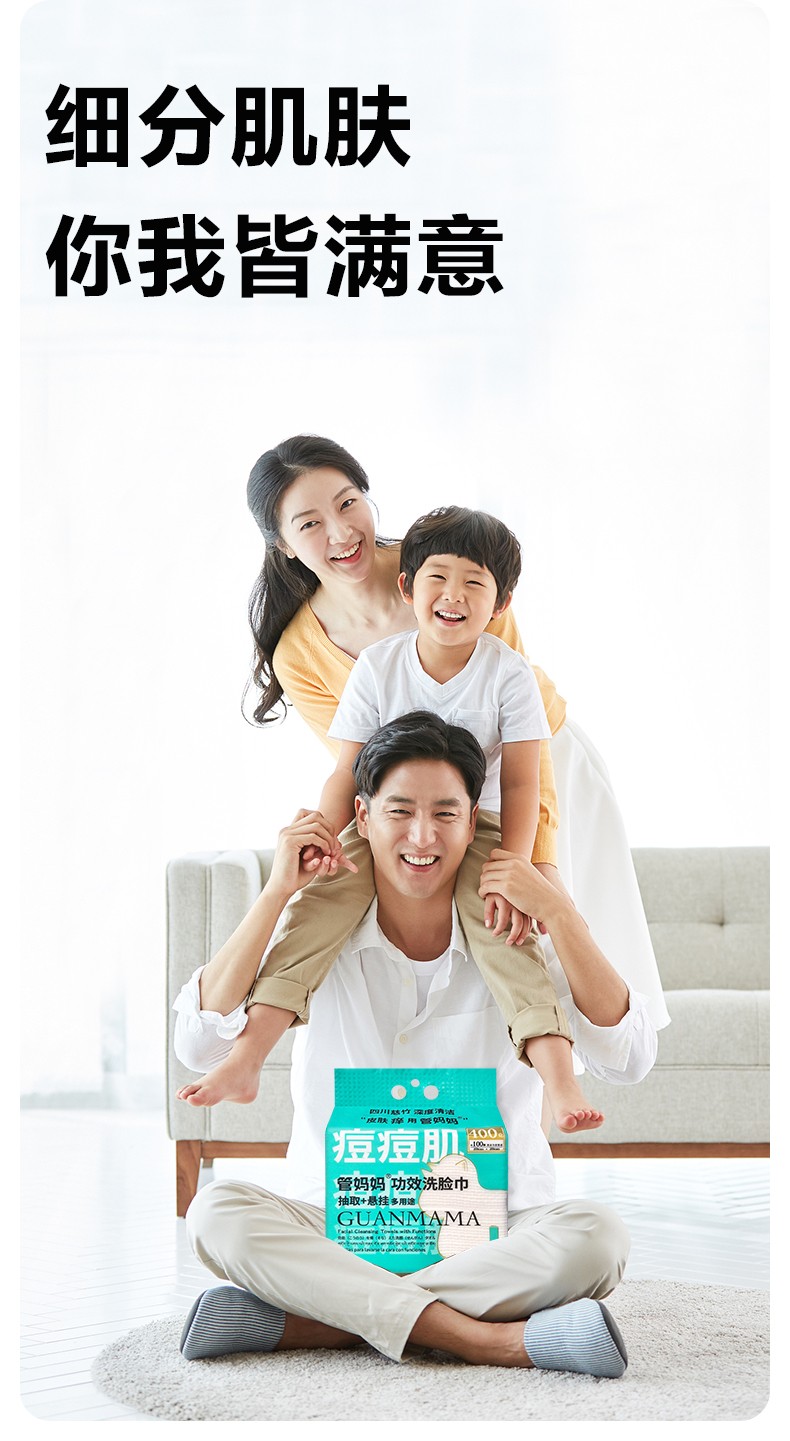 (汇景缘)管妈妈痘痘肌400克洗脸巾 分类功效加大加厚悬挂式洁面棉柔巾祛痘加厚擦脸巾中国慈竹100抽提送挂钩