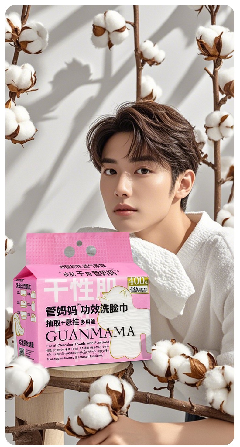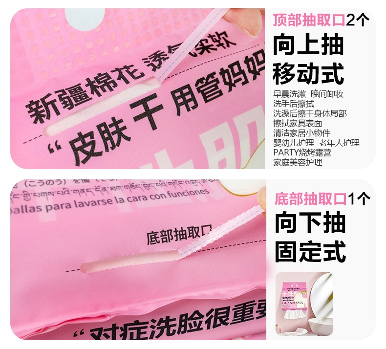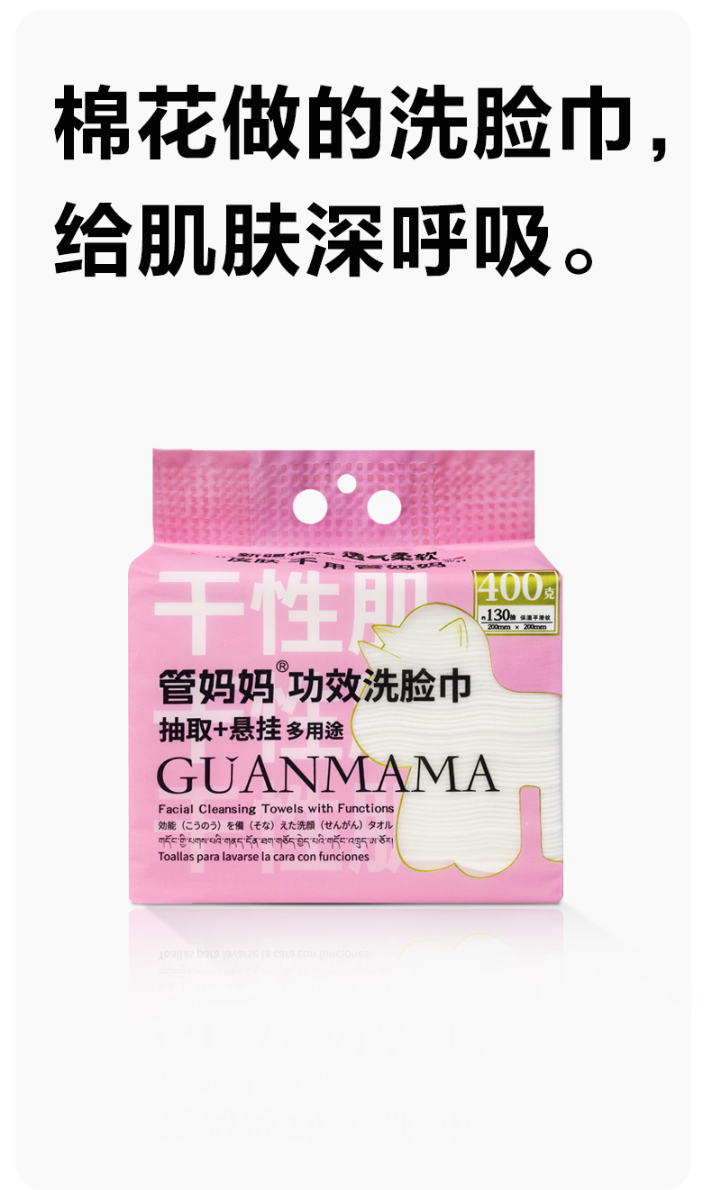 商品名称:(汇景缘)管妈妈干性肌400克洗脸巾 分类功效加大加厚悬挂式洁面棉柔巾祛痘加厚擦脸巾干皮卸妆巾 新疆棉花130抽提送挂钩