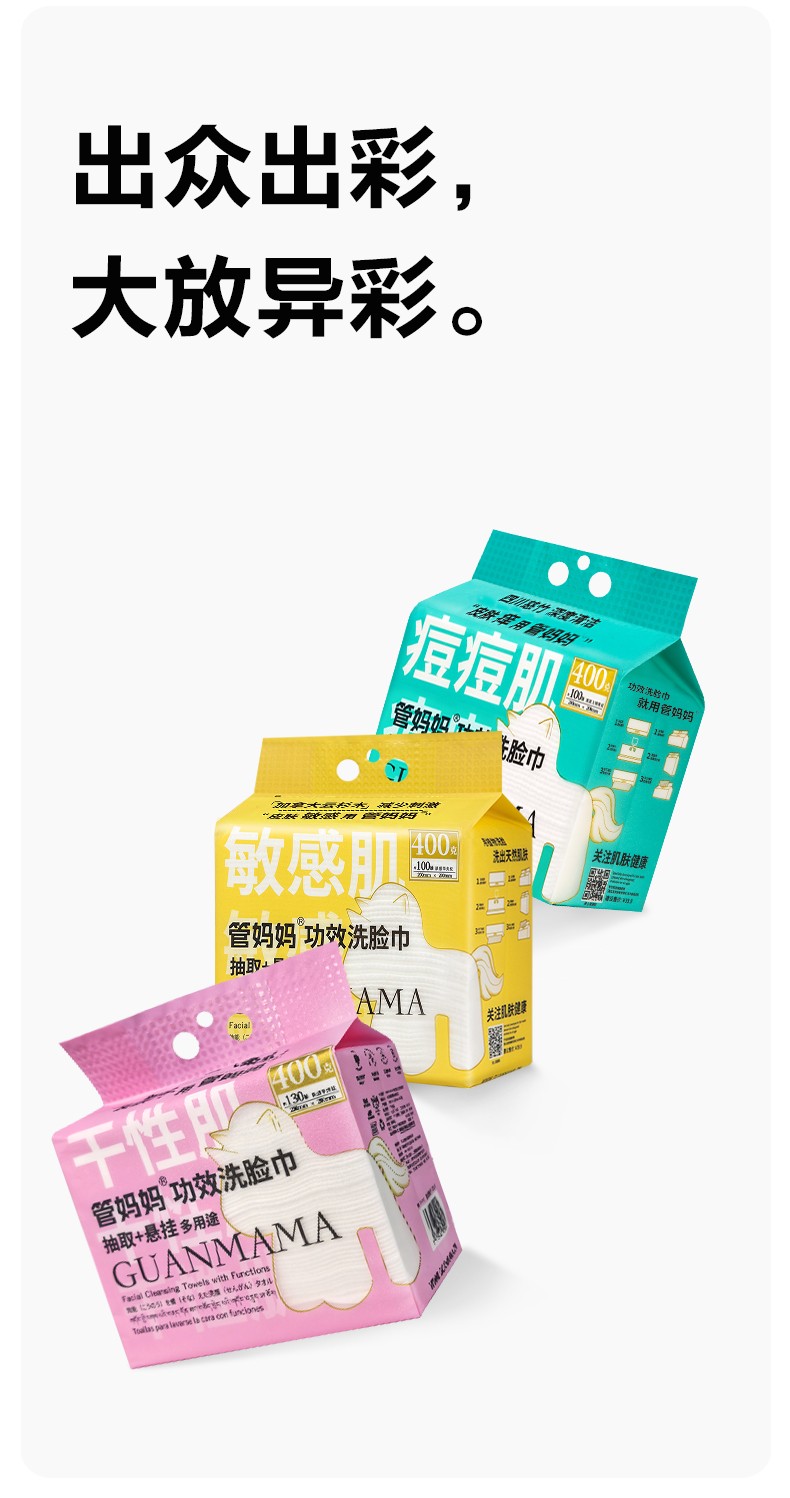 (汇景缘)管妈妈干性肌400克洗脸巾 分类功效加大加厚悬挂式洁面棉柔巾祛痘加厚擦脸巾干皮卸妆巾 新疆棉花130抽提送挂钩