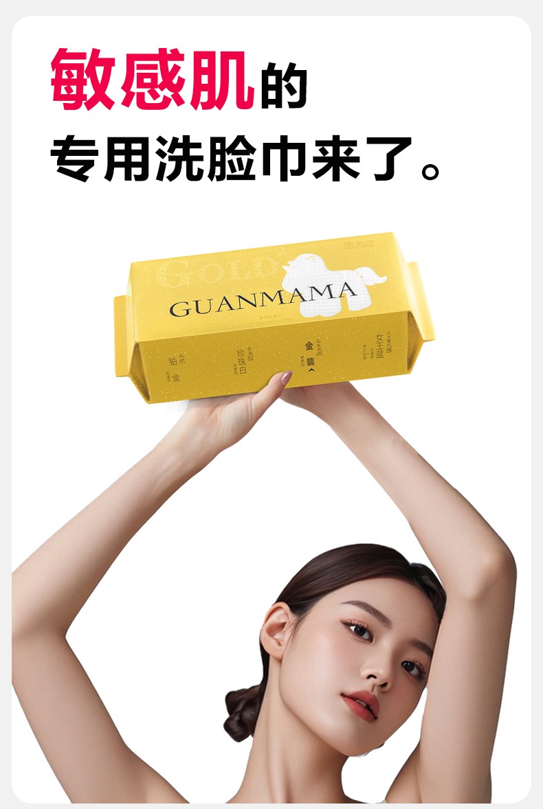 (汇景缘)管妈妈抗菌一次性洗脸巾加大加厚洁面巾纸抽取式卸妆巾干湿巾婴童可用 女王金【唤醒肌肤220克】50抽*1包