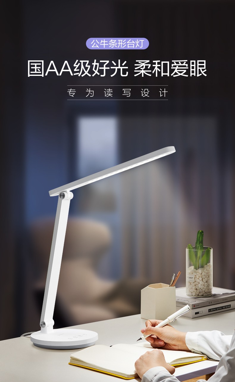 (超运·禾贸)公牛(BULL)白色AA级照度夜灯条形台灯ML-C012C-ED 防蓝光台灯儿童学习工作阅读台灯学生/寝室/宿舍/卧室