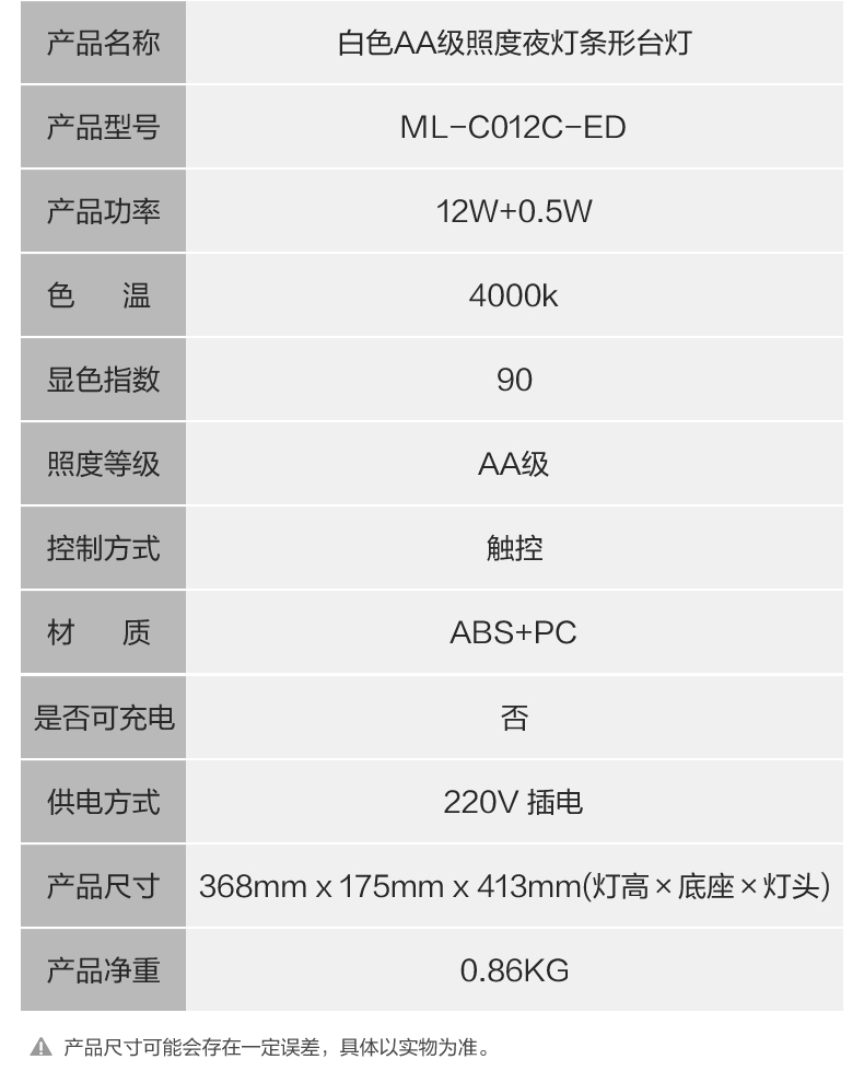 商品名称:(超运·禾贸)公牛(BULL)白色AA级照度夜灯条形台灯ML-C012C-ED 防蓝光台灯儿童学习工作阅读台灯学生/寝室/宿舍/卧室