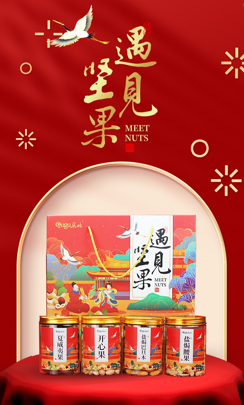 (中科惠橙)屈姑遇见坚果礼盒1000G 4罐装干果果仁新货零食坚果果