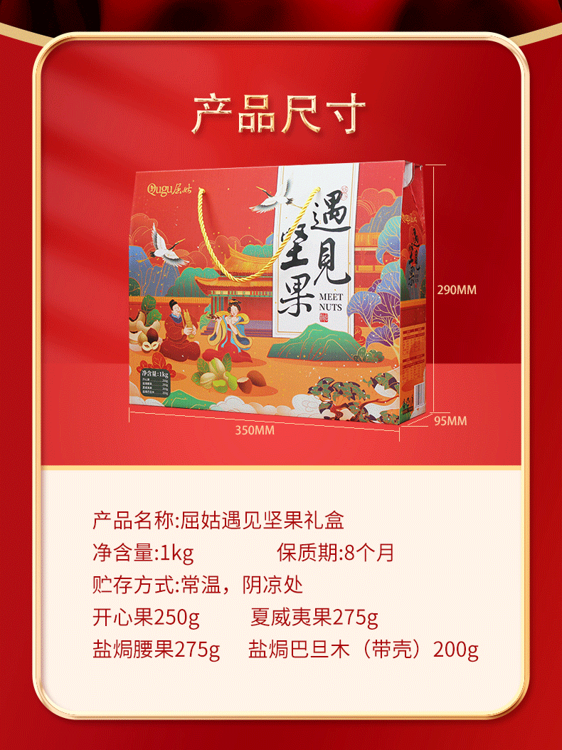 商品名称:(中科惠橙)屈姑遇见坚果礼盒1000G 4罐装干果果仁新货零食坚果果