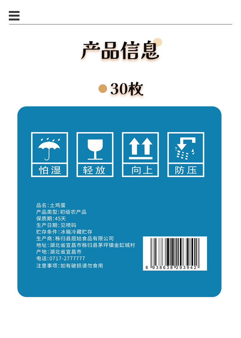 商品名称:(中科惠橙)屈姑土鸡蛋30枚装 农家散养新鲜