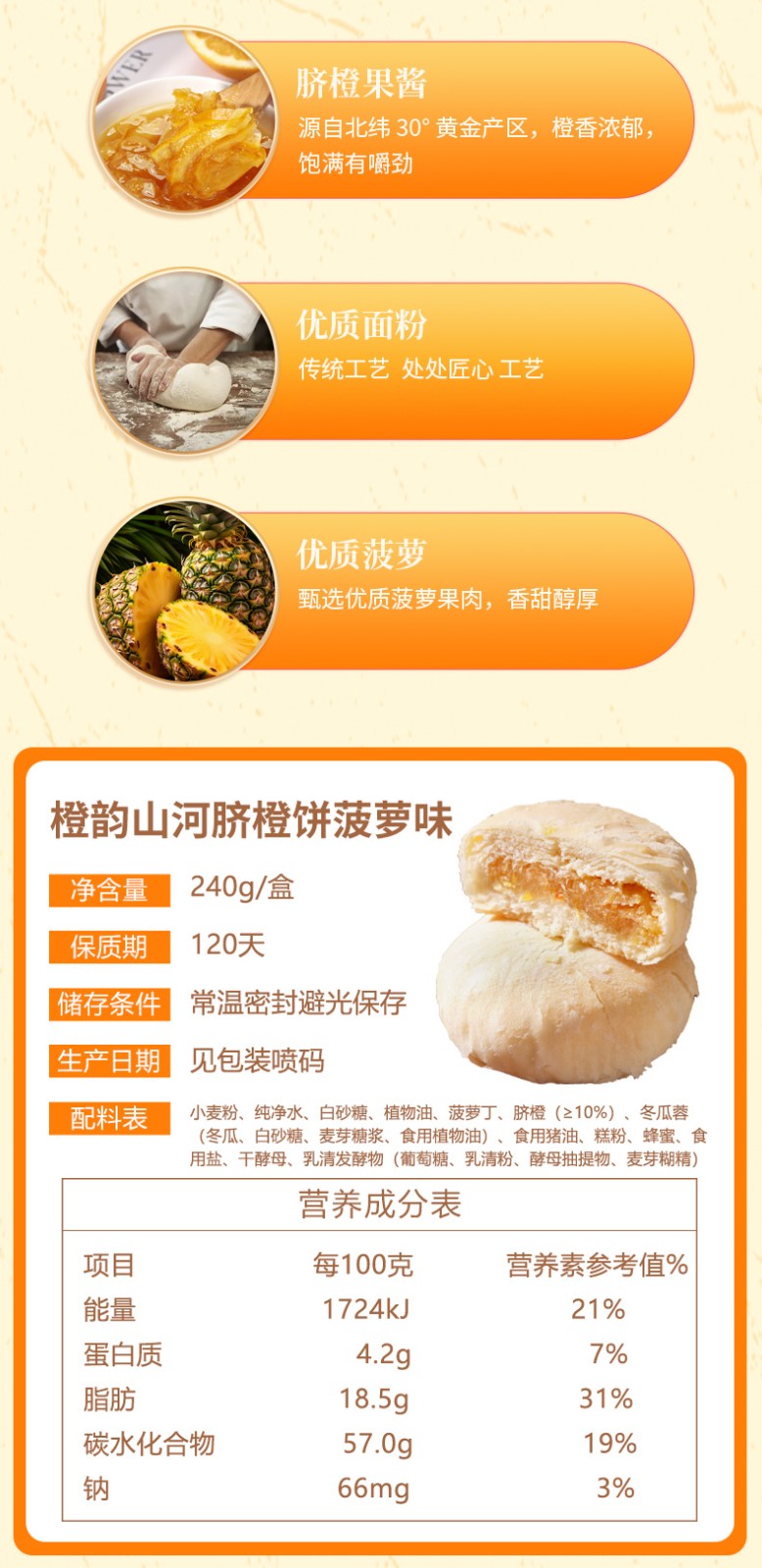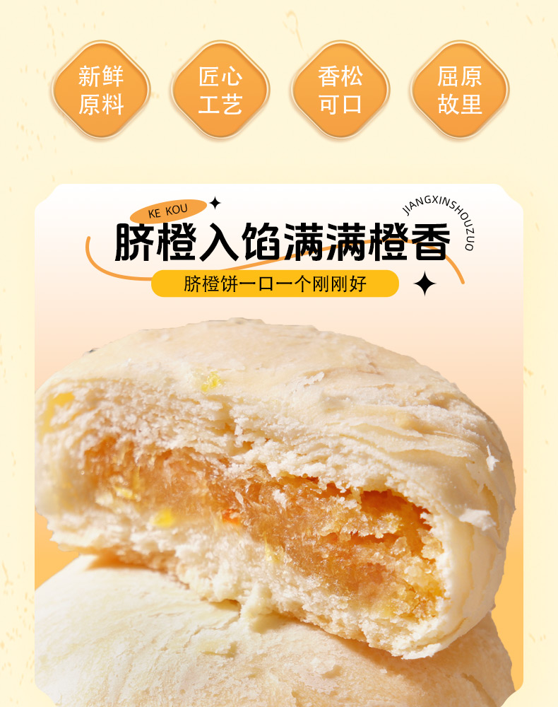 商品名称:(中科惠橙)屈姑橙韵山河脐橙饼 脐橙菠萝味240g 糕点点心
