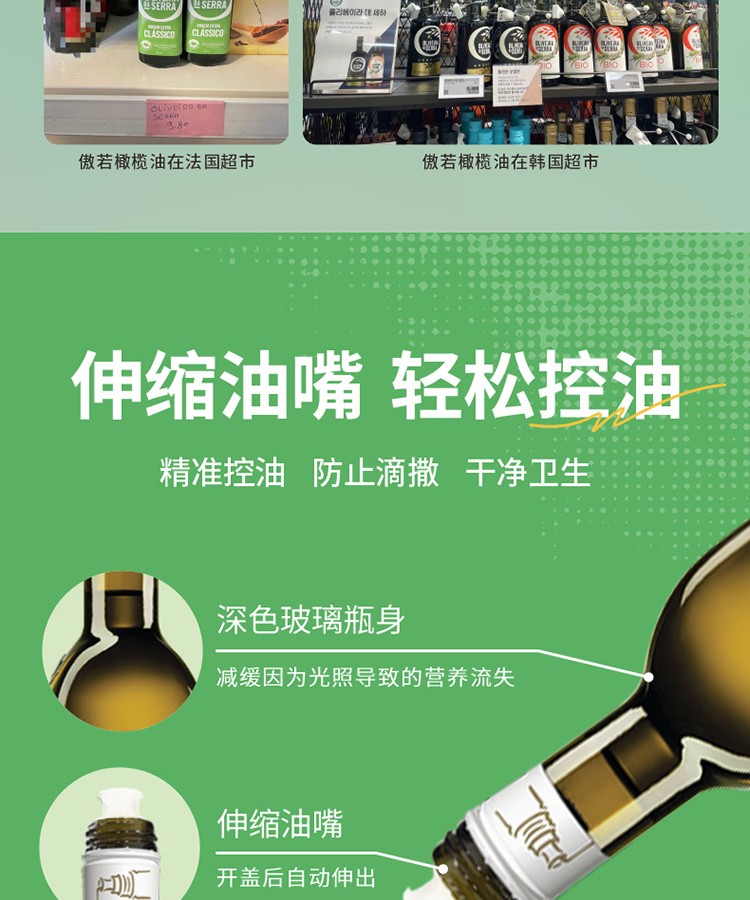 商品名称:(巨邦佑)T+ (yp)傲若【保真橄榄油】特级初榨橄榄油1L瓶装 西班牙原装原瓶进口