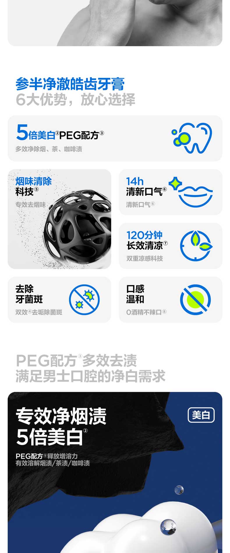商品名称:(世星阳光)参半净澈皓齿牙膏冰暴薄荷味 长效清新口气除味留香男士亮白牙齿冰暴薄荷