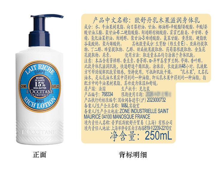 商品名称:(世星阳光)+欧舒丹 乳木果身体润肤露 250ml 滋润型滋润保湿嫩肤防裂礼物送女友
