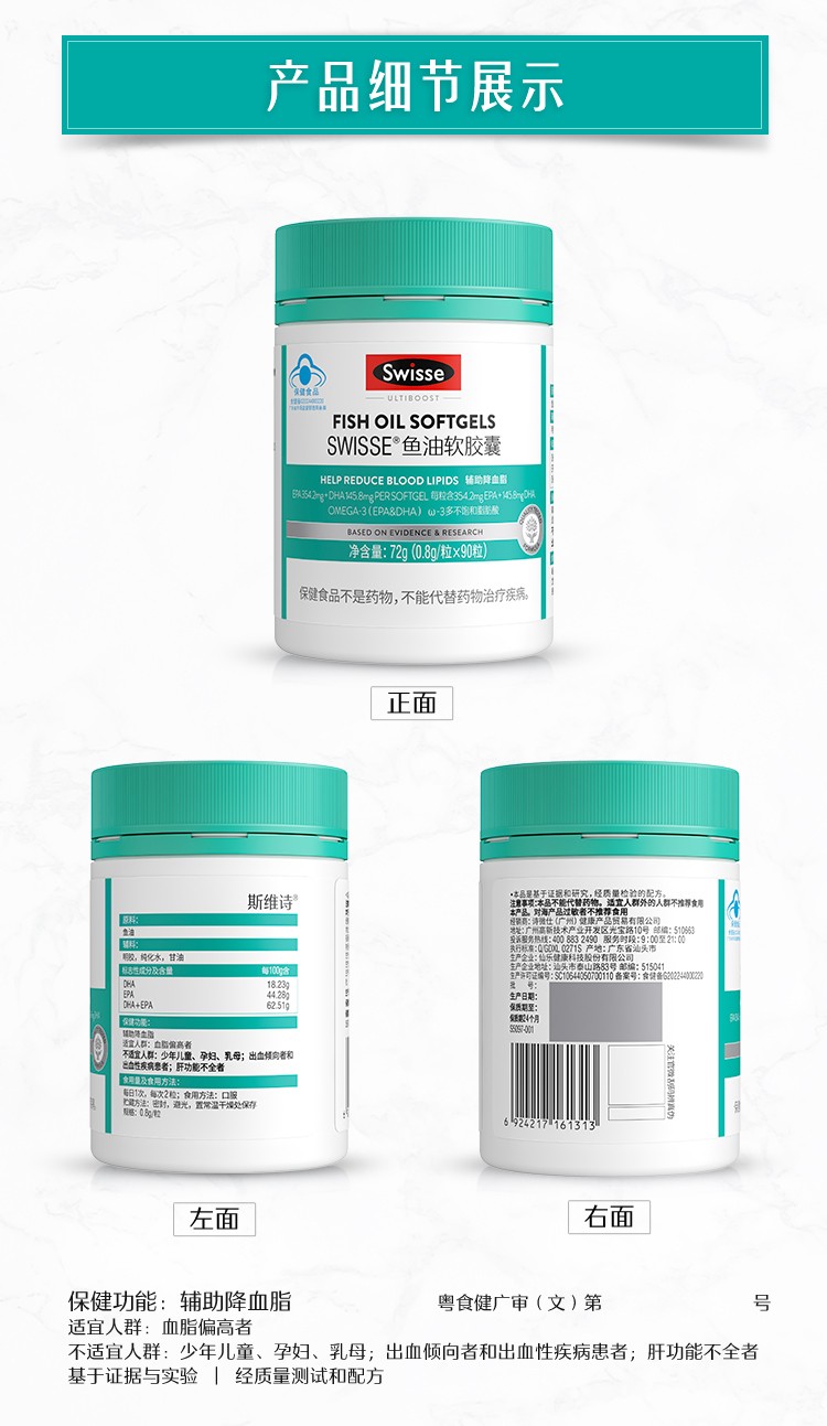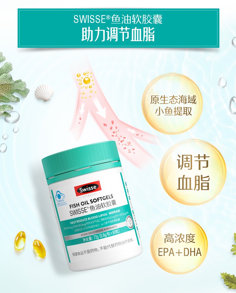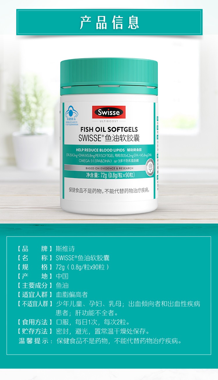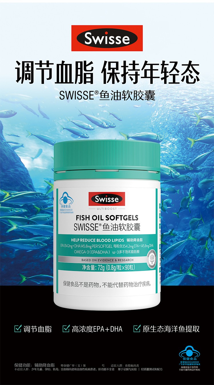 商品名称:(世星阳光)+Swisse斯维诗 鱼油软胶囊90粒 深海鱼油胶囊 omega-3 EPA+DHA 辅助降血脂 蓝帽认证