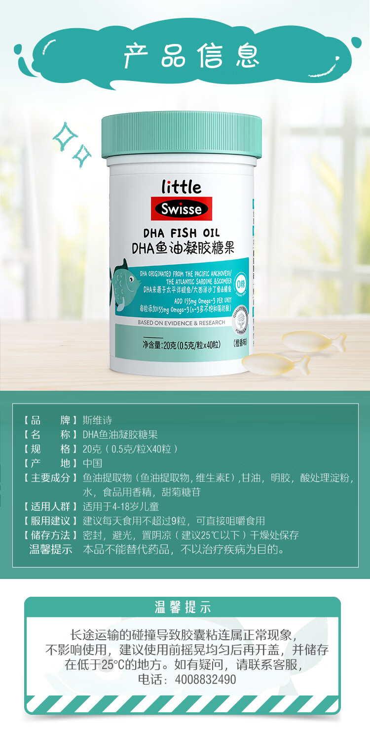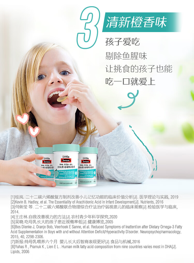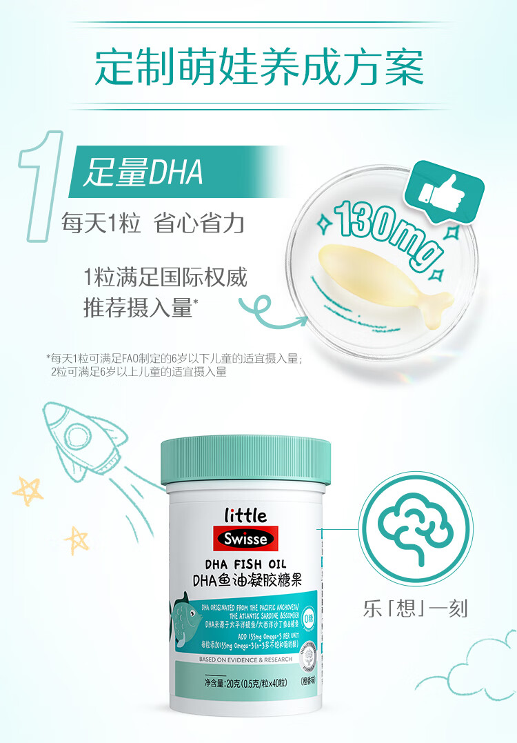 商品名称:(世星阳光)+Swisse斯维诗 小小斯维诗DHA鱼油凝胶糖果(橙香味) 40粒装 含EPA补眼脑 无腥味 3岁+儿童适用