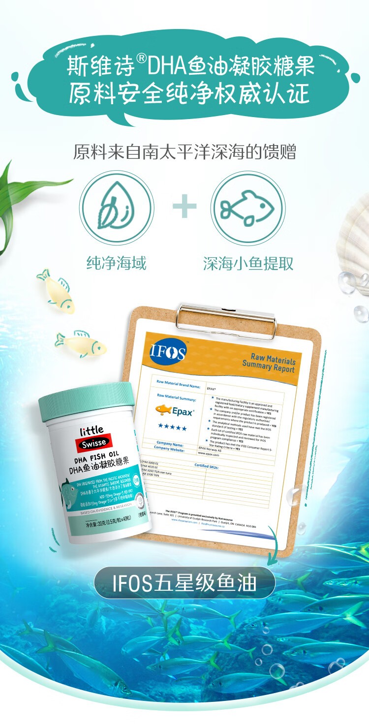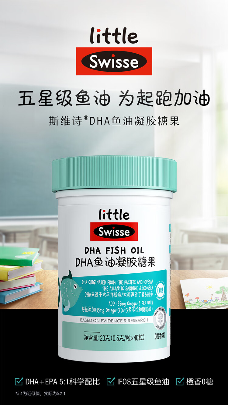(世星阳光)+Swisse斯维诗 小小斯维诗DHA鱼油凝胶糖果(橙香味) 40粒装 含EPA补眼脑 无腥味 3岁+儿童适用