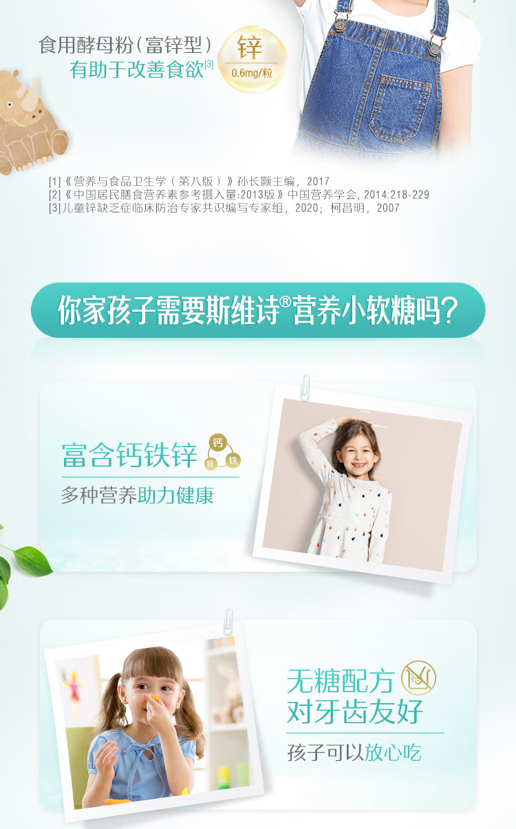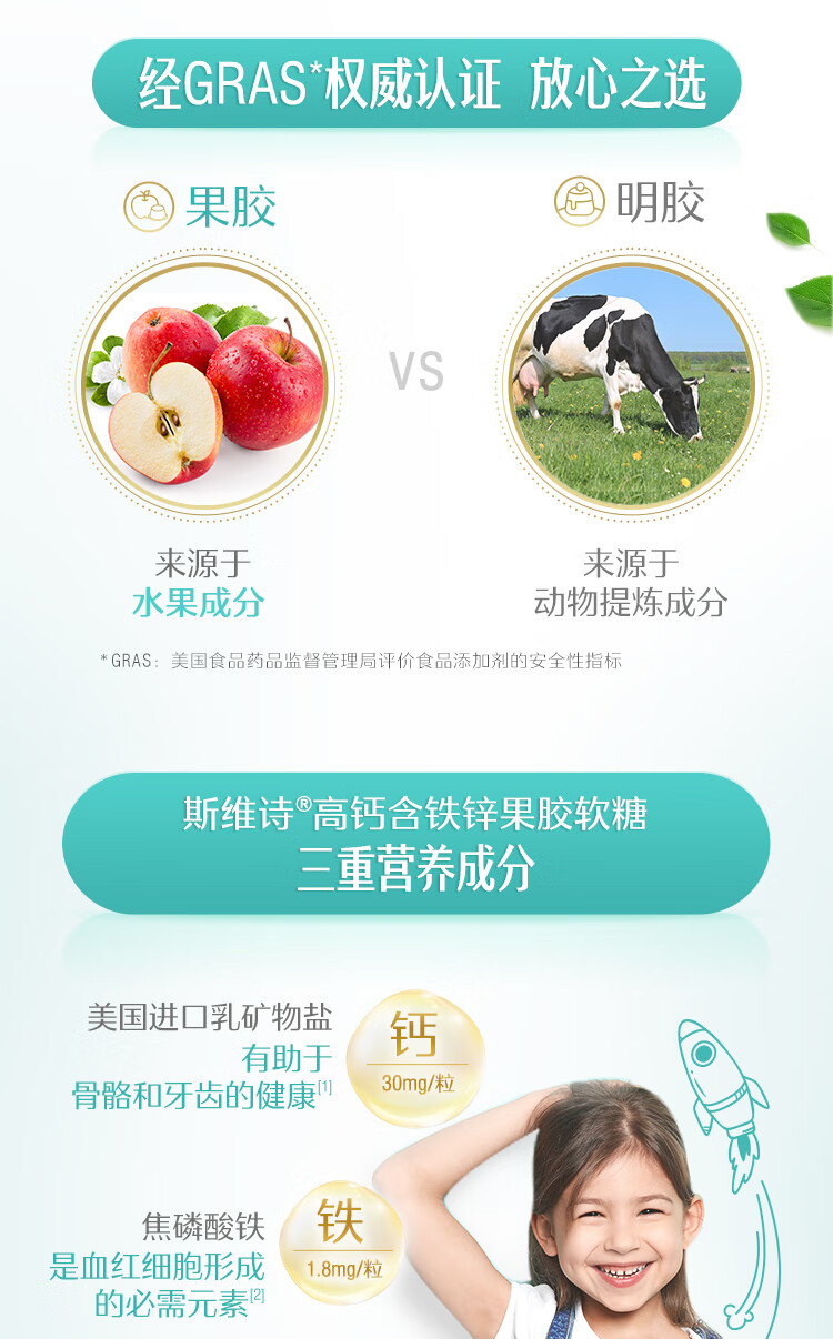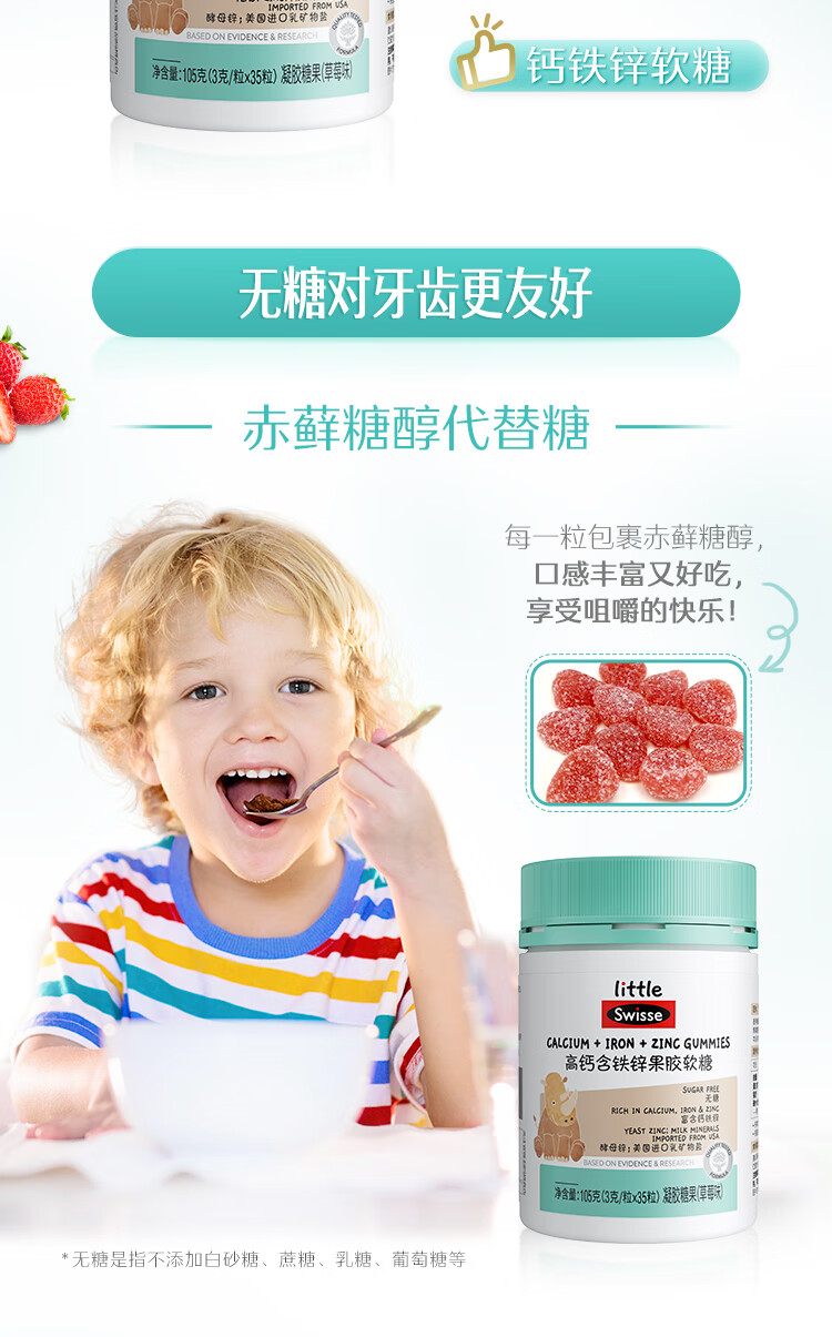 (世星阳光)+Swisse斯维诗 高钙含铁锌果胶软糖 105克(3克 x 35粒)草莓味 高钙含铁锌软糖 呵护骨骼牙齿健康 3岁+儿童适用