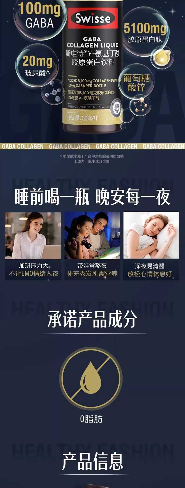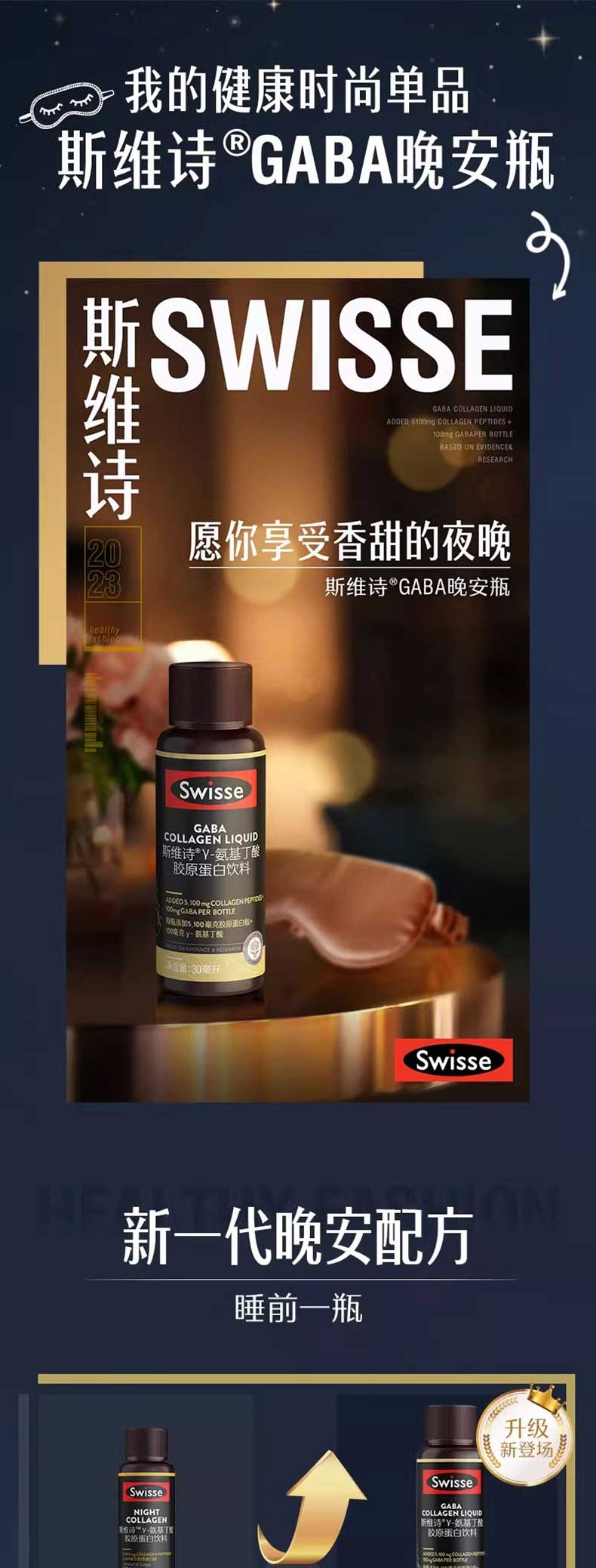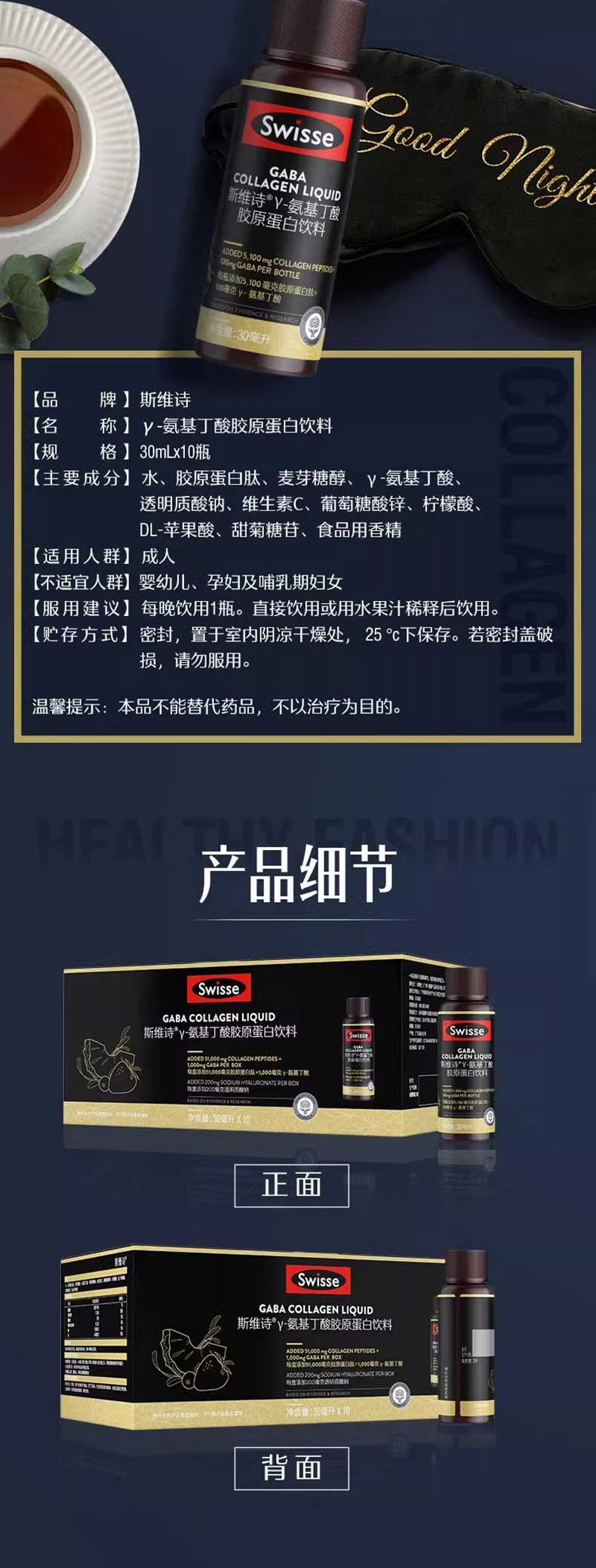 商品名称:(世星阳光)+Swisse斯维诗 GABA胶原蛋白饮料10×30毫升 GABA水光瓶 每瓶100mg氨基丁酸5100mg胶原蛋白肽