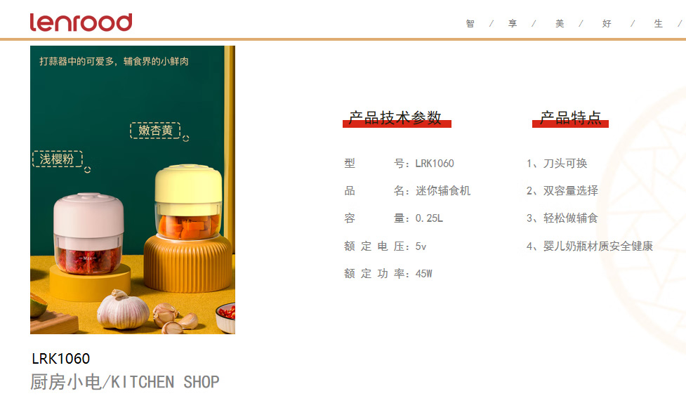 商品名称:(巨邦佑)BJ+邻鹿 辅食机 0.25L LRK-1060 迷你打蒜器绞肉机电动多功能小型料理机搅拌机碎肉绞馅