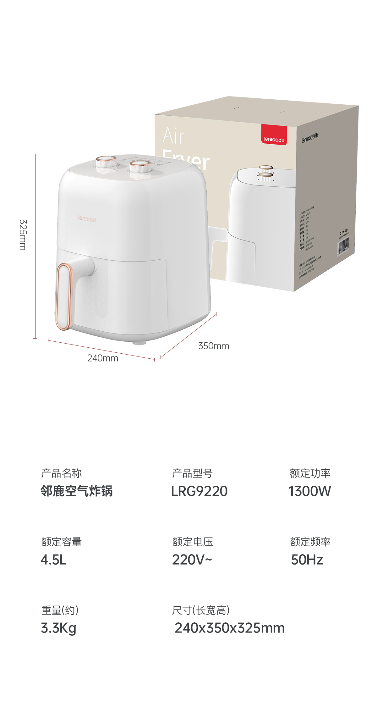 商品名称:(巨邦佑)BJ+邻鹿 机械款空气炸锅 4.5L LR-9220 大容量多功能智能家用
