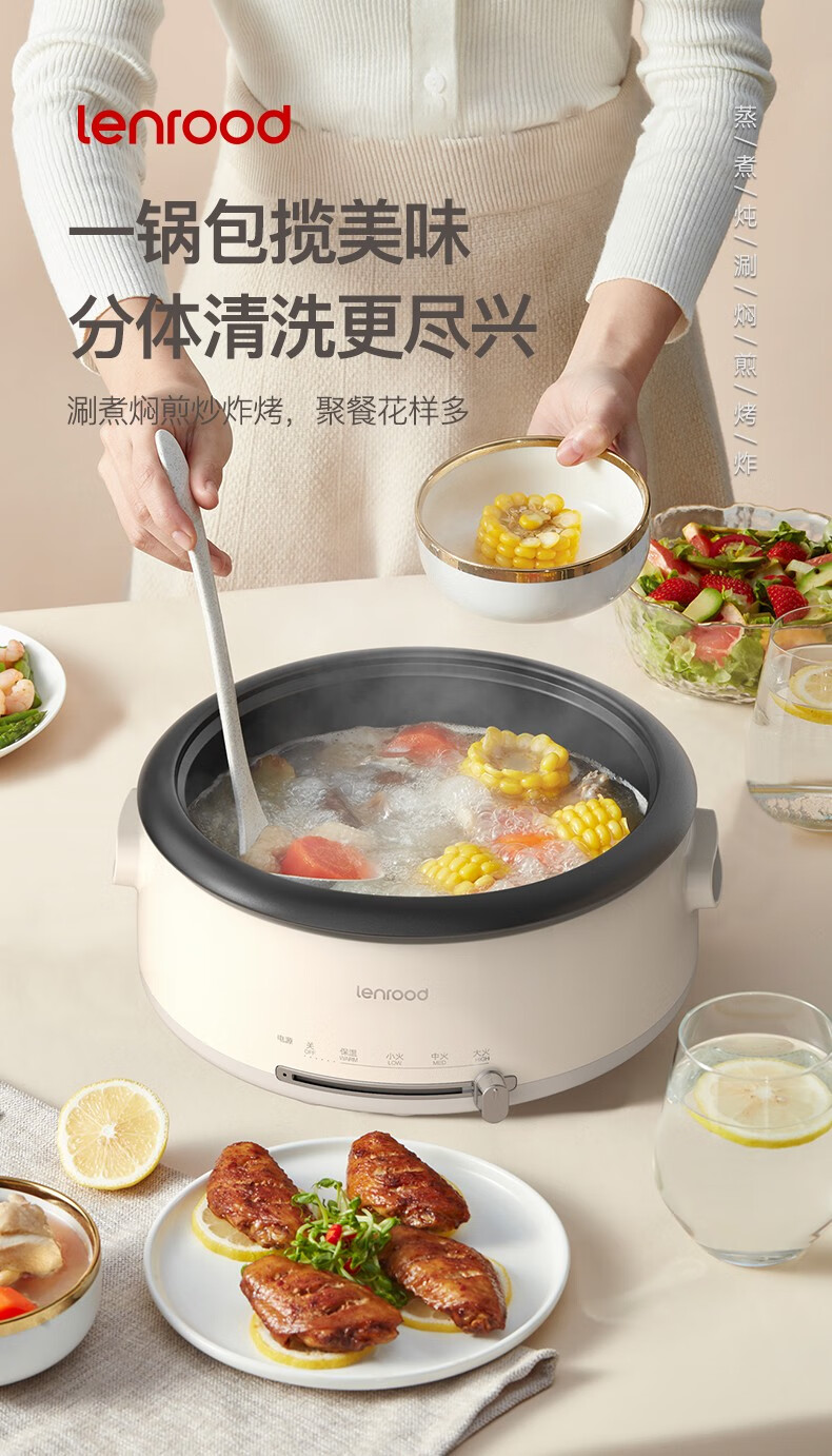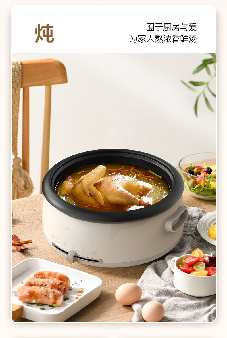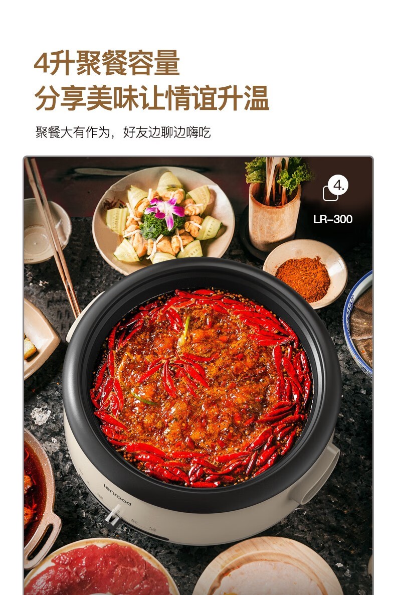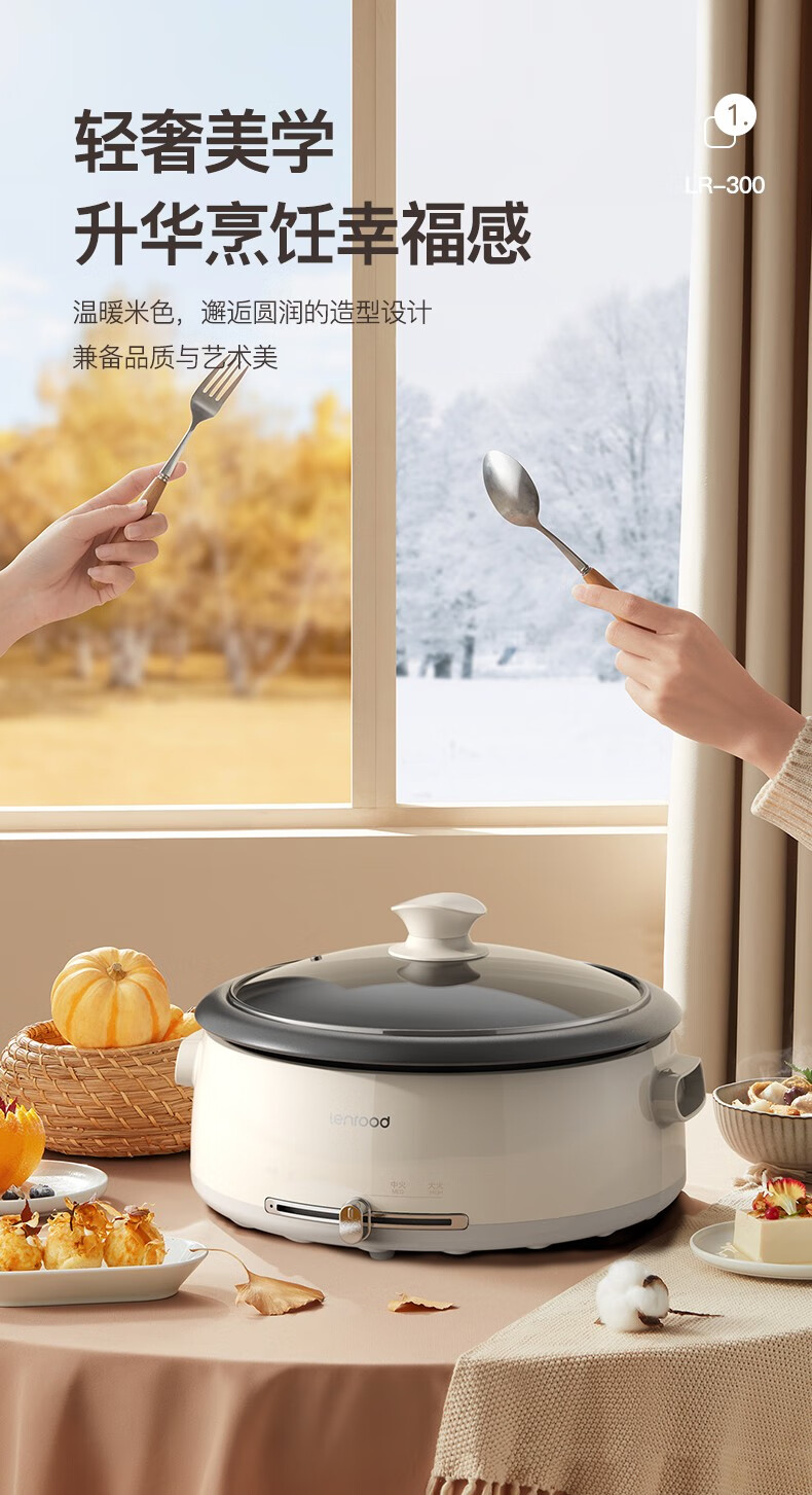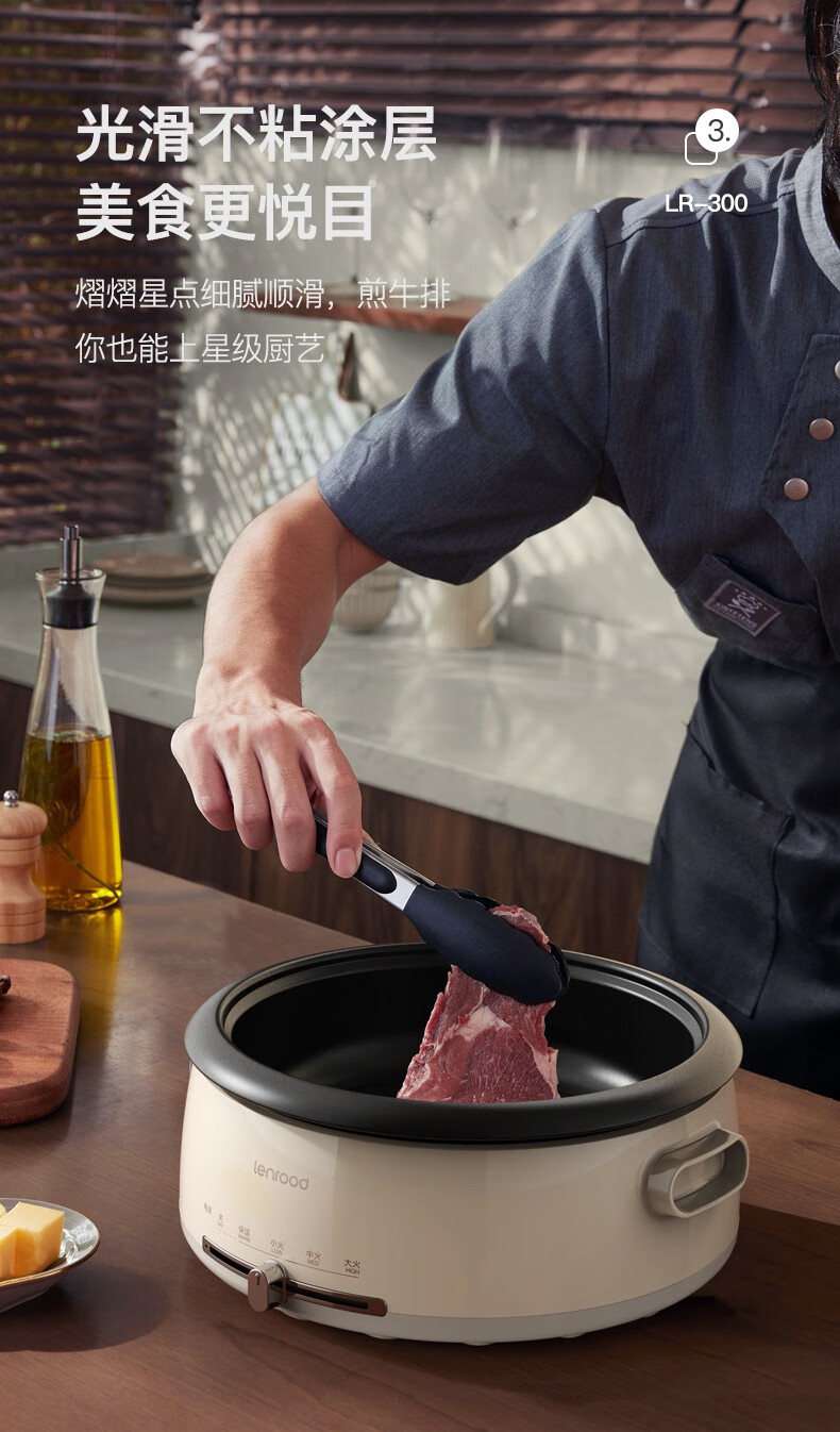 (巨邦佑)BJ+邻鹿 多功能料理锅 4L LR-300电火锅炒菜煮面锅