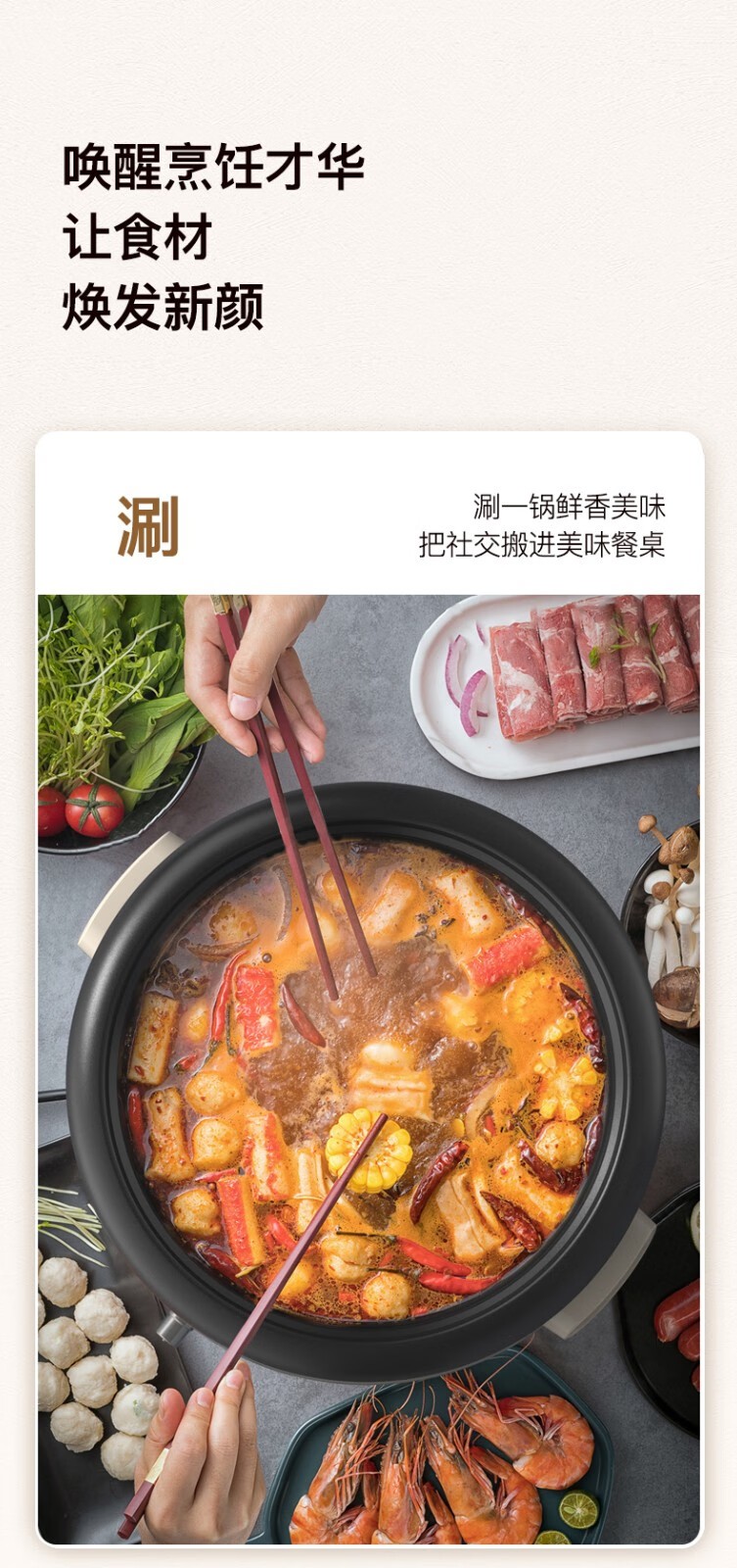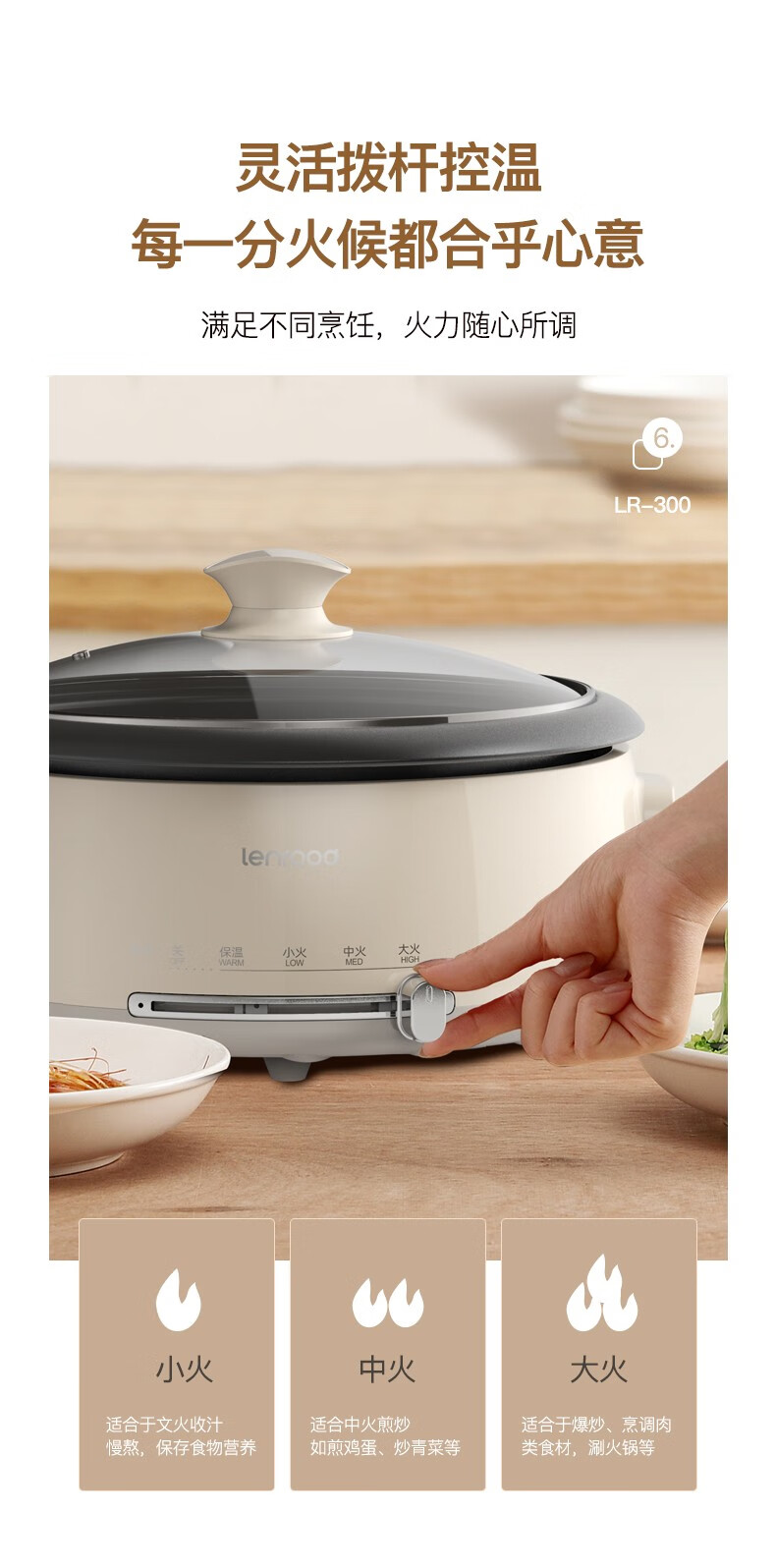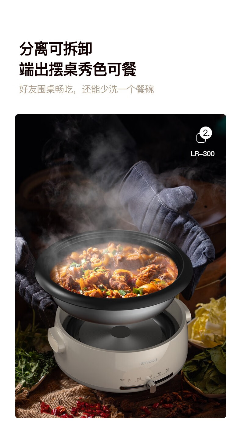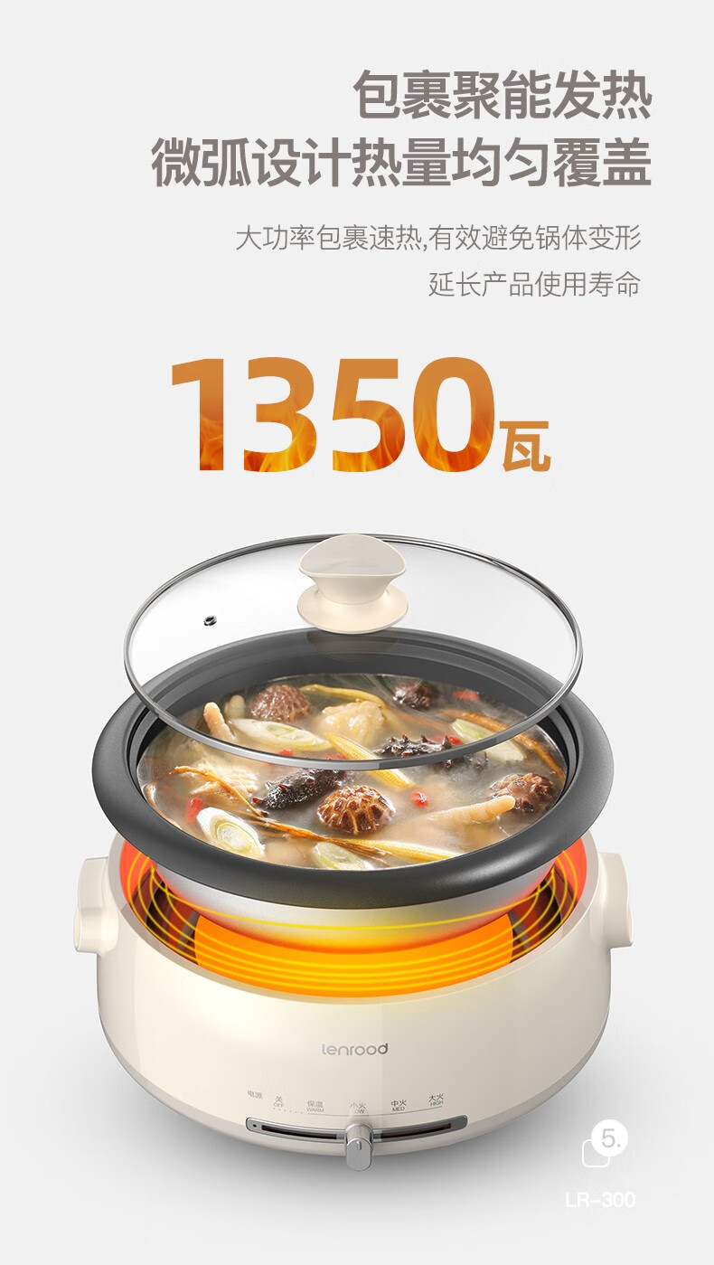 (巨邦佑)BJ+邻鹿 多功能料理锅 4L LR-300电火锅炒菜煮面锅
