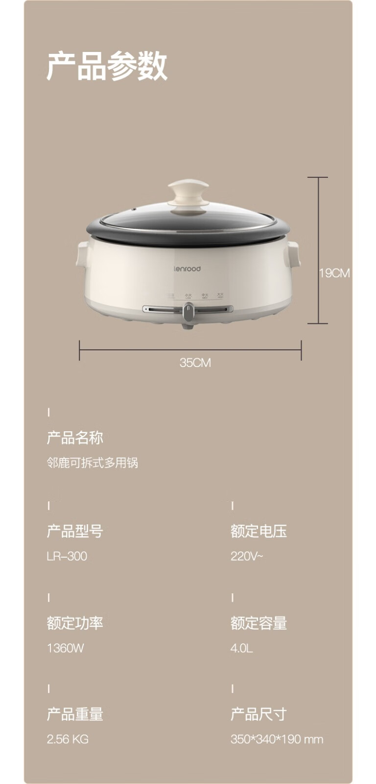 商品名称:(巨邦佑)BJ+邻鹿 多功能料理锅 4L LR-300电火锅炒菜煮面锅