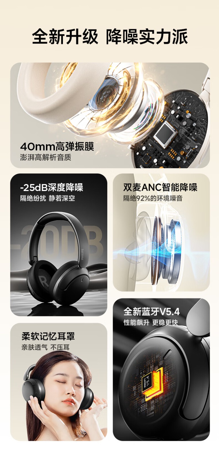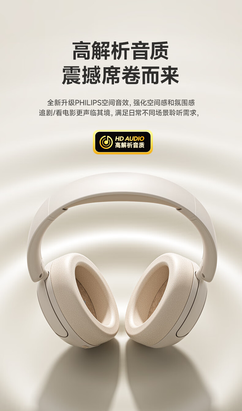 (巨邦佑)BJ+飞利浦 耳机 TAH3020 头戴式无线蓝牙耳机主动降噪高音质无线有线游戏电竞低延迟适用苹果
