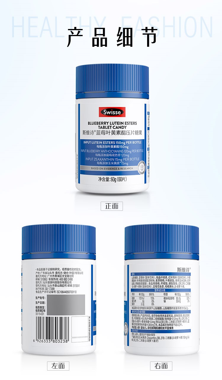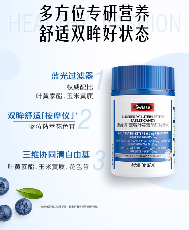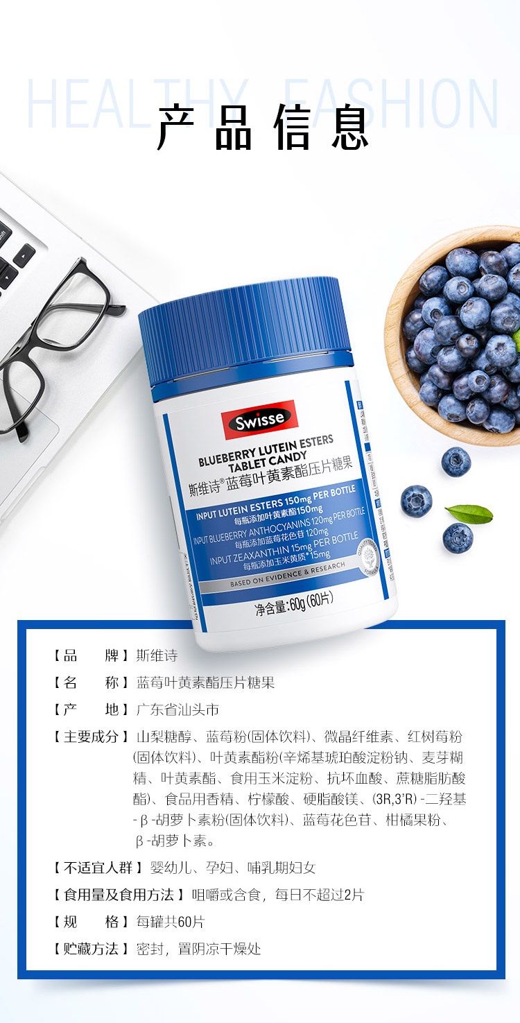 商品名称:(世星阳光)Swisse斯维诗 蓝莓叶黄素酯压片糖果60片