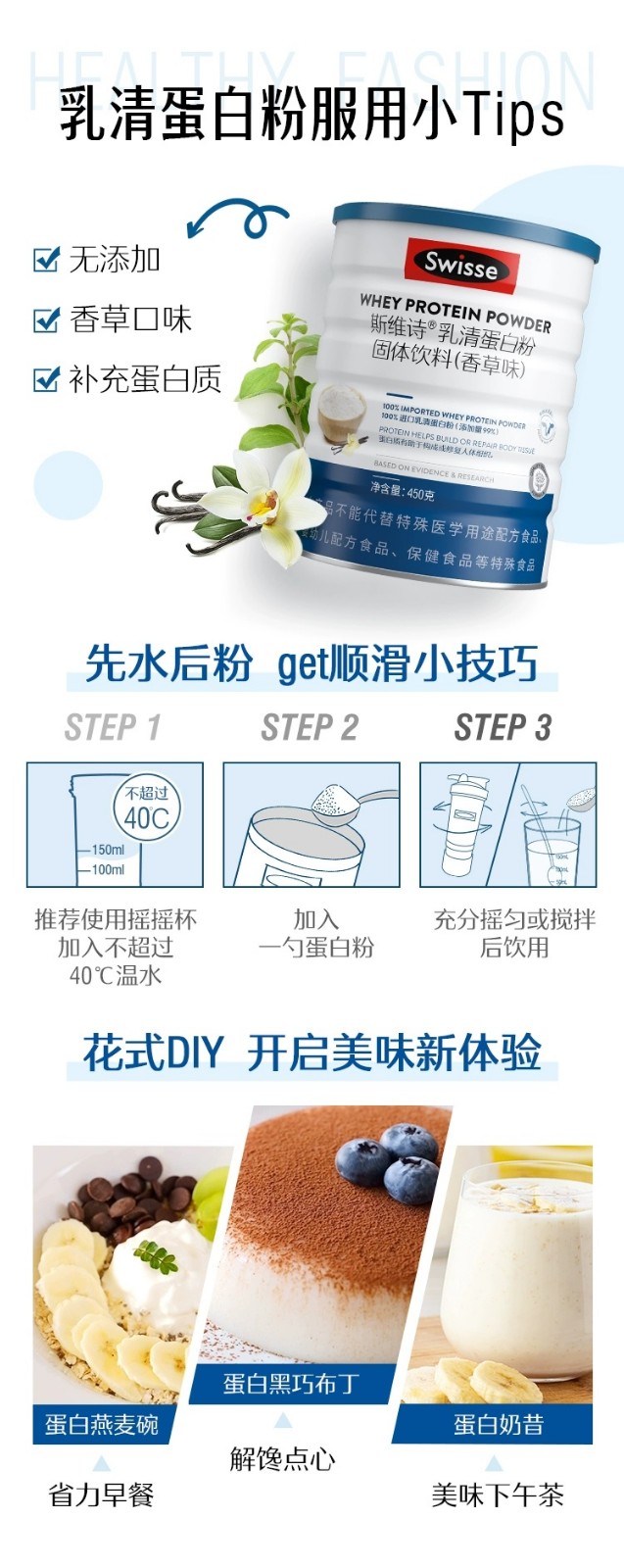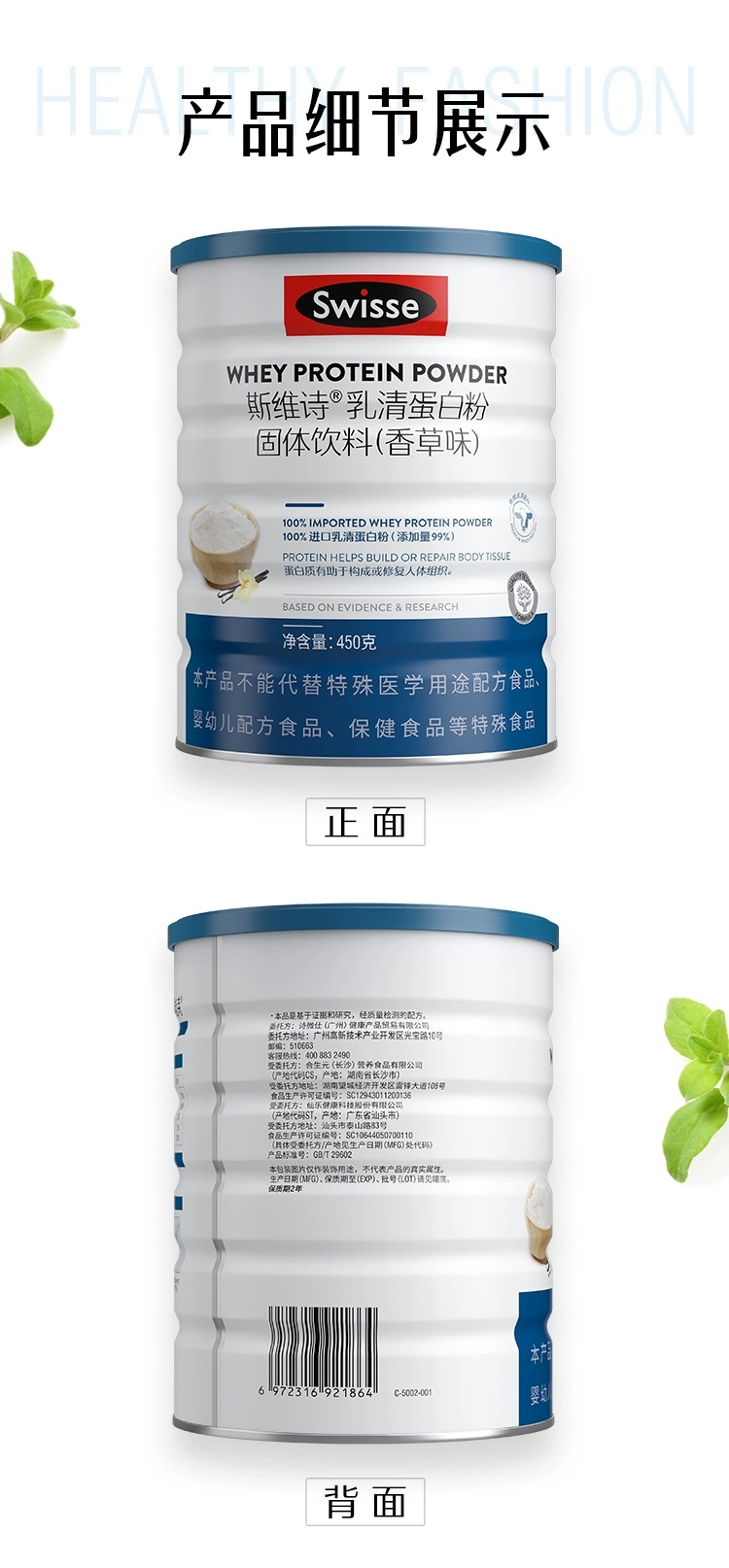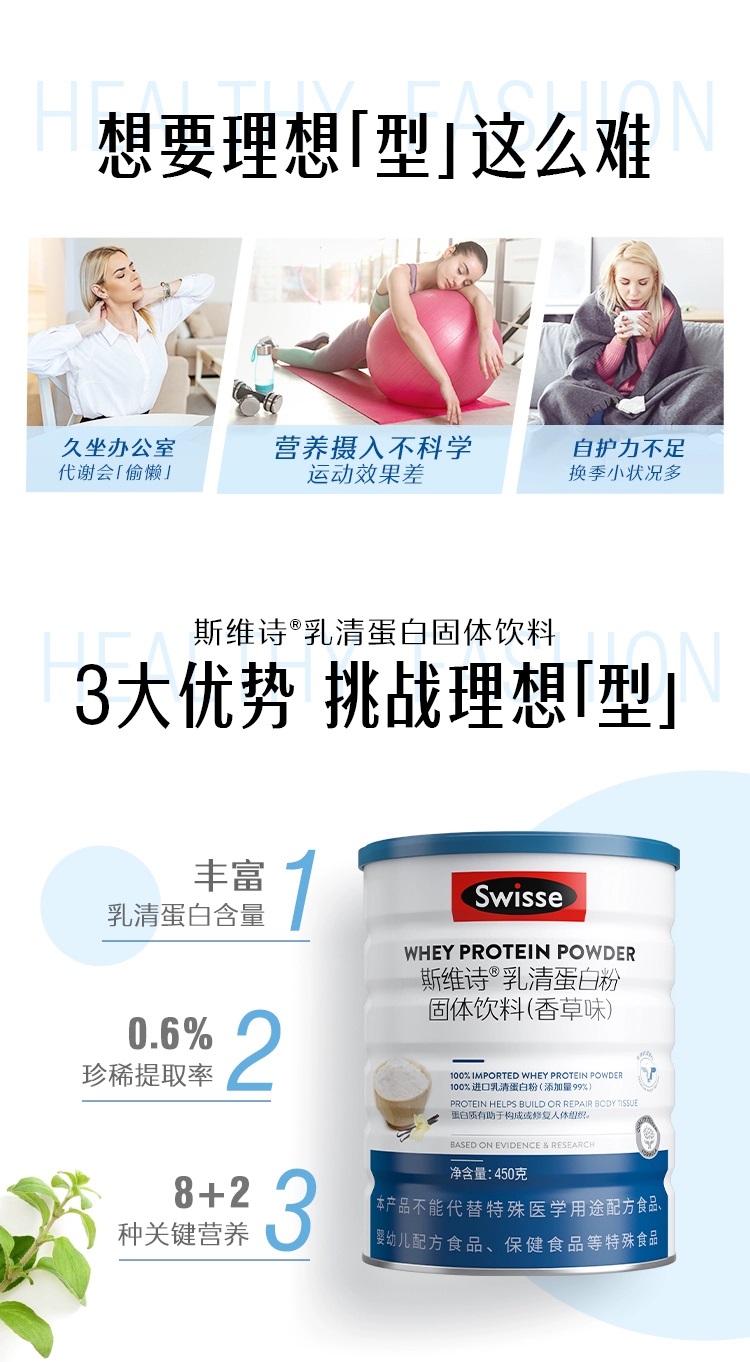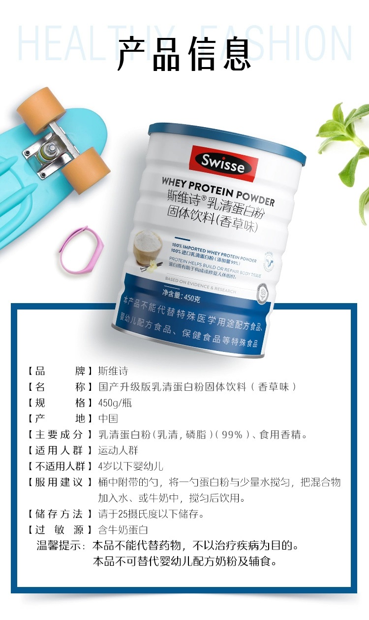 商品名称:(世星阳光)Swisse斯维诗 高钙多维乳清蛋白粉固体饮料(香草味)450g 高钙多维乳清蛋白粉 水解乳清蛋白易吸收 中老年营养品
