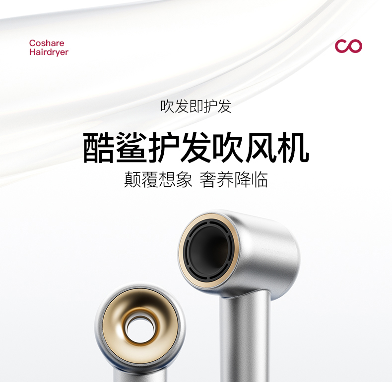 (世星阳光)+酷鲨 高速吹风机HD10 护发吹风机 速干无叶 便携大风量 负离子低噪
