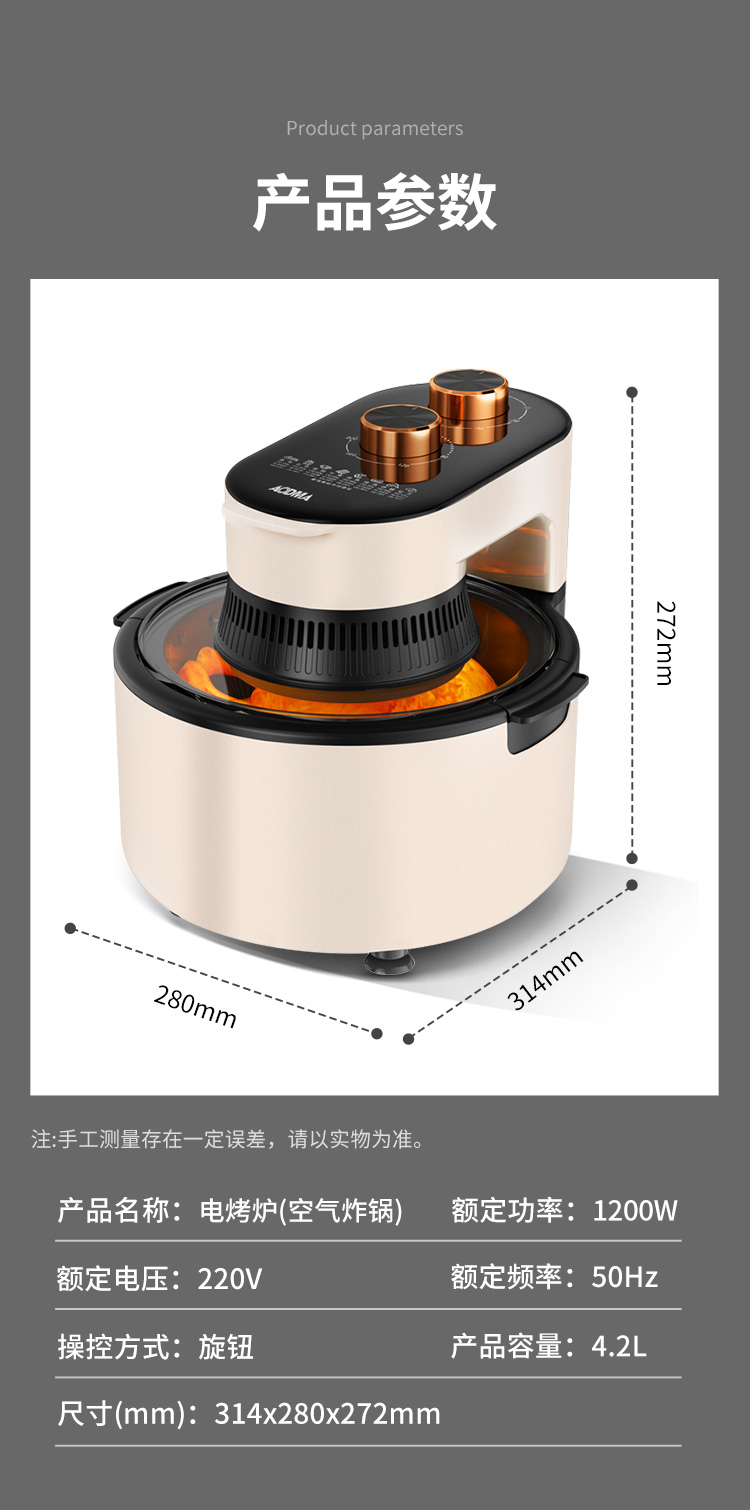 商品名称:(巨邦佑)BJ+澳得迈 空气炸锅 4.2L S10 可视化多功能大容量电炸锅 不沾易清洗家用上掀盖式