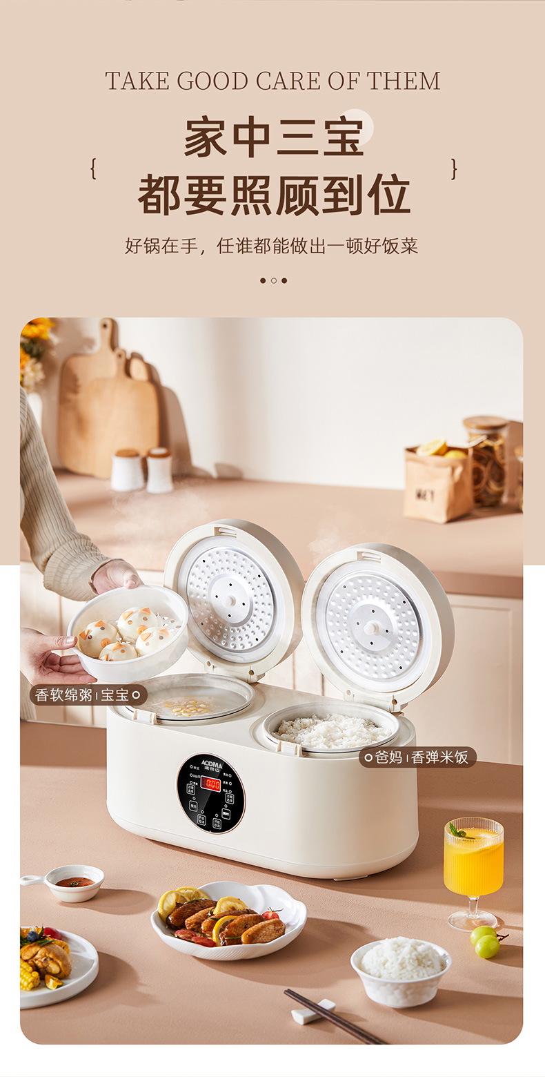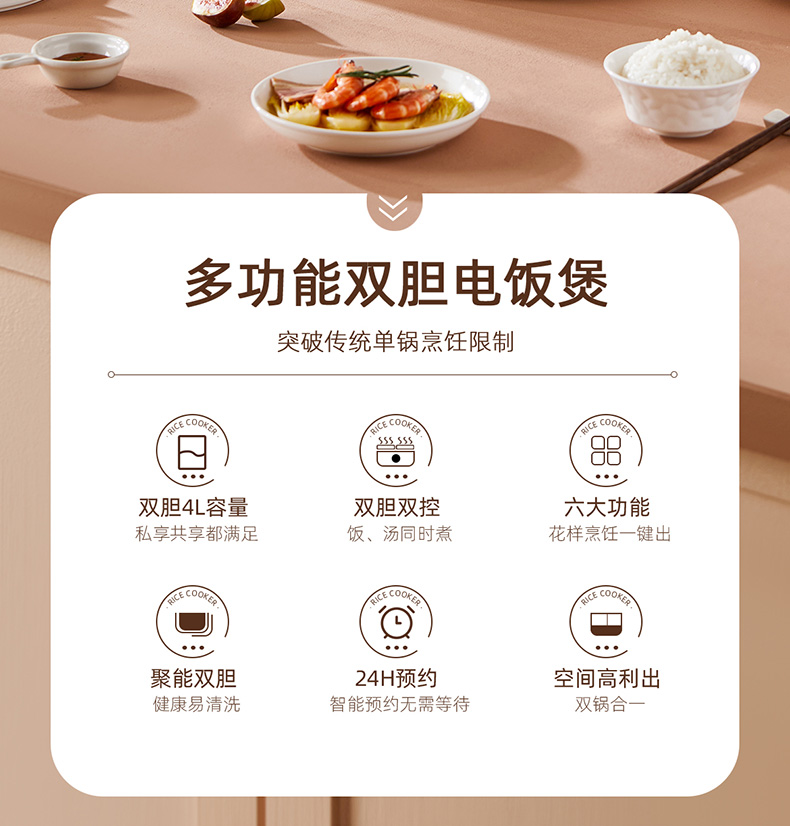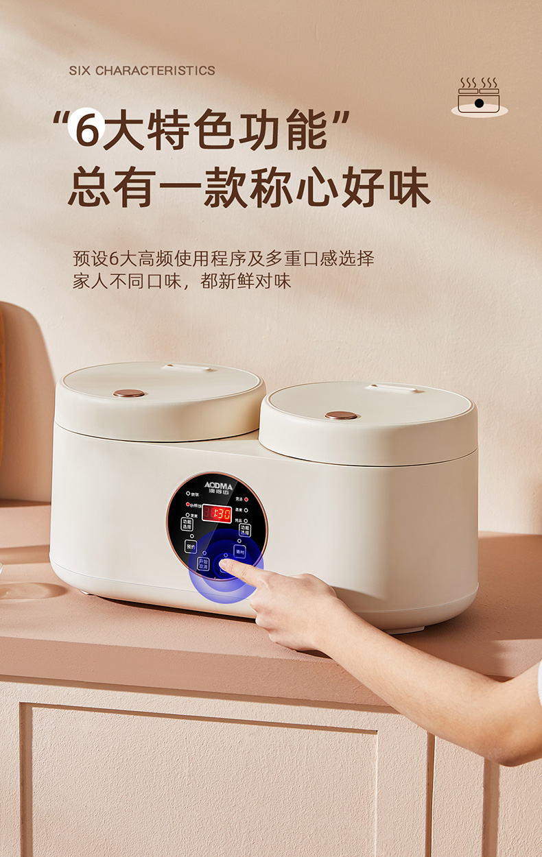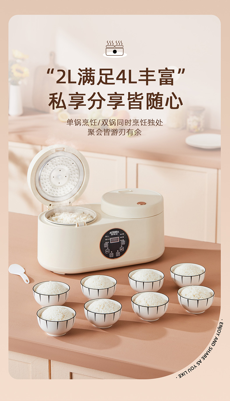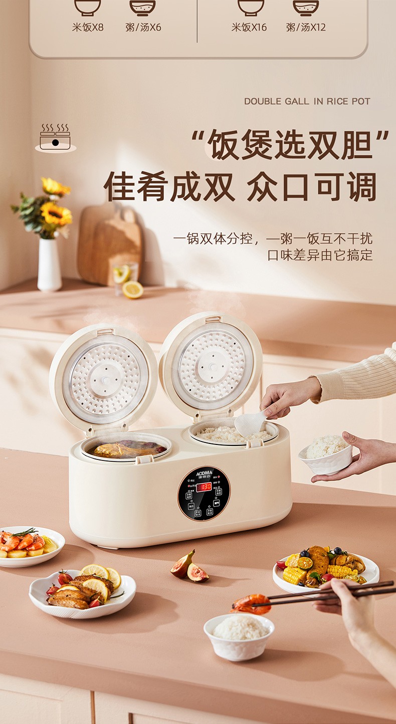商品名称:(巨邦佑)BJ+澳得迈 双胆电饭煲 4L S8 智能双控煮饭煲汤煮粥多功能家用迷你不粘内胆
