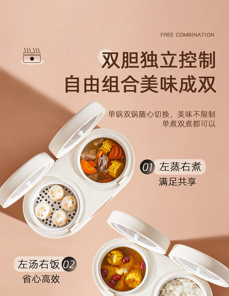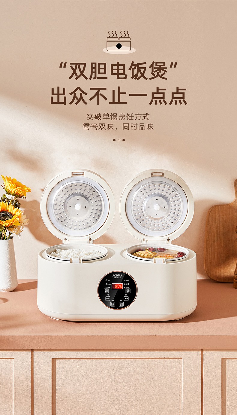 (巨邦佑)BJ+澳得迈 双胆电饭煲 4L S8 智能双控煮饭煲汤煮粥多功能家用迷你不粘内胆