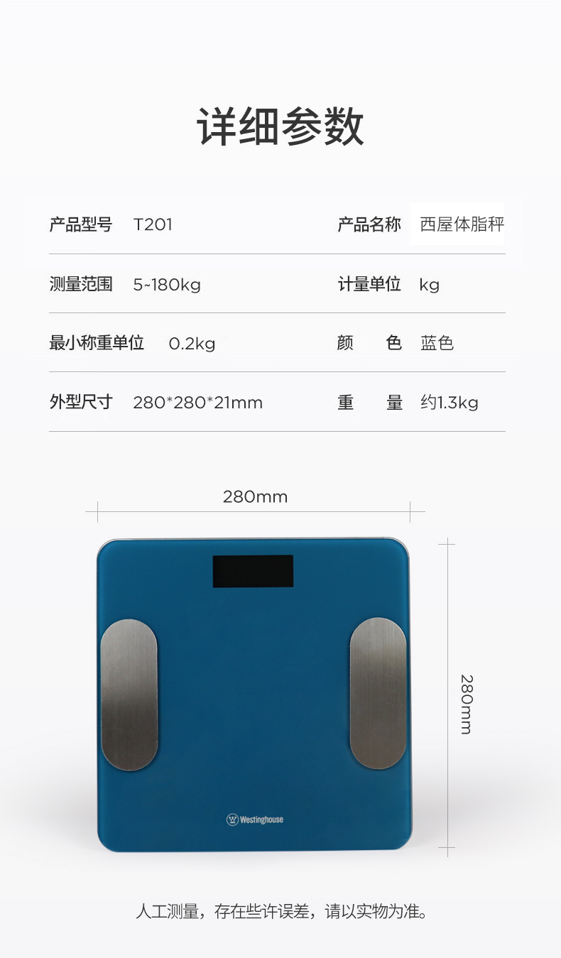 商品名称:(巨邦佑)BJ+西屋 体脂秤 T201 健康电子秤体重秤