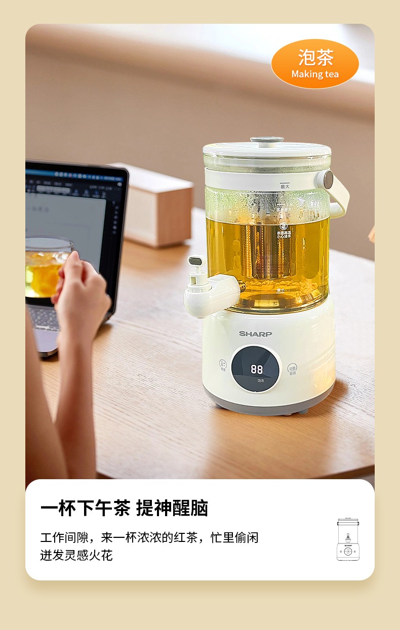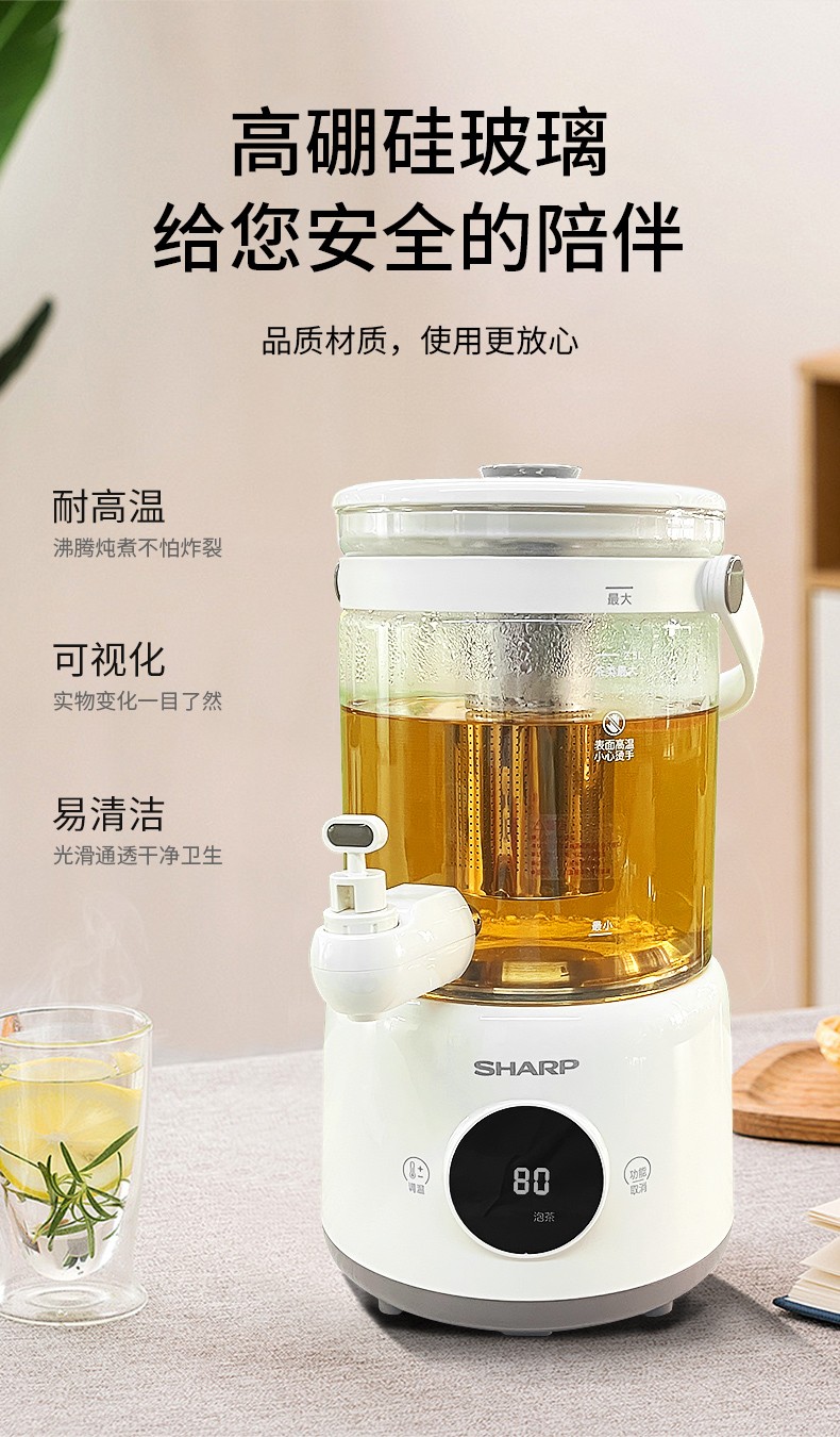 (巨邦佑)BJ+夏普 多功能电热壶 2.8L KP-WT30L-W 花茶水果茶煮茶器煮茶壶