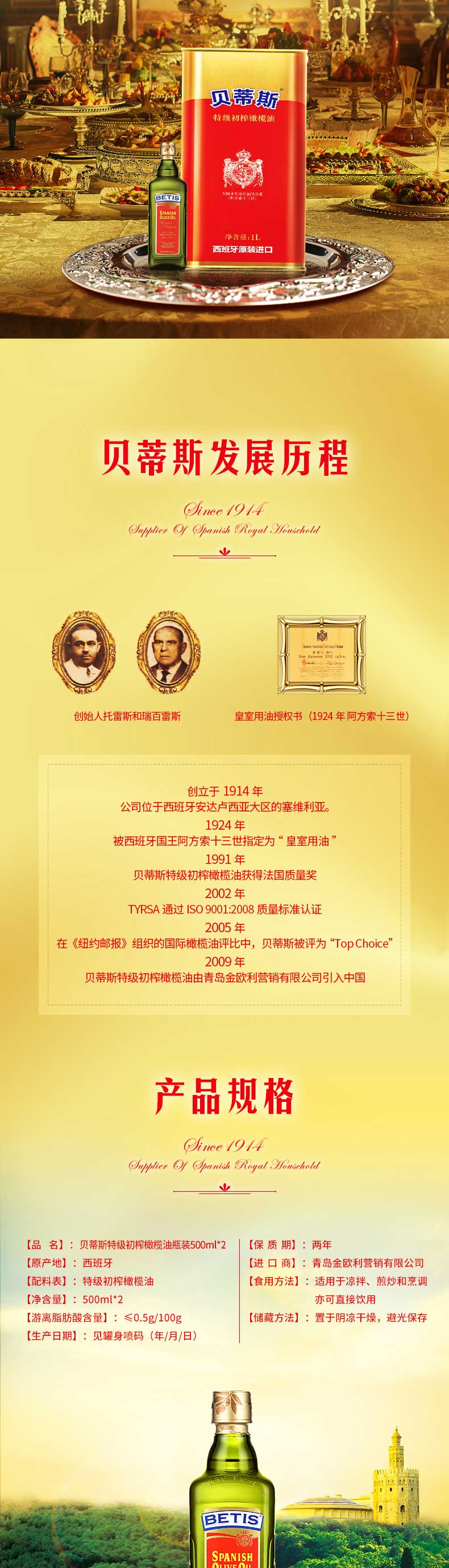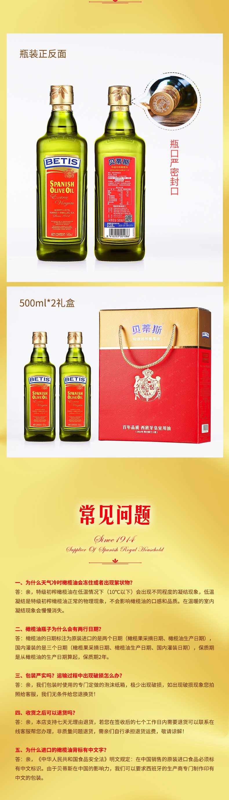 商品名称:(世星阳光)+贝蒂斯 特级初榨橄榄油 500ml*2礼盒 赠送价值49.9元有机亚麻籽油125ml*1瓶 保真橄榄油 西班牙原瓶原装进口