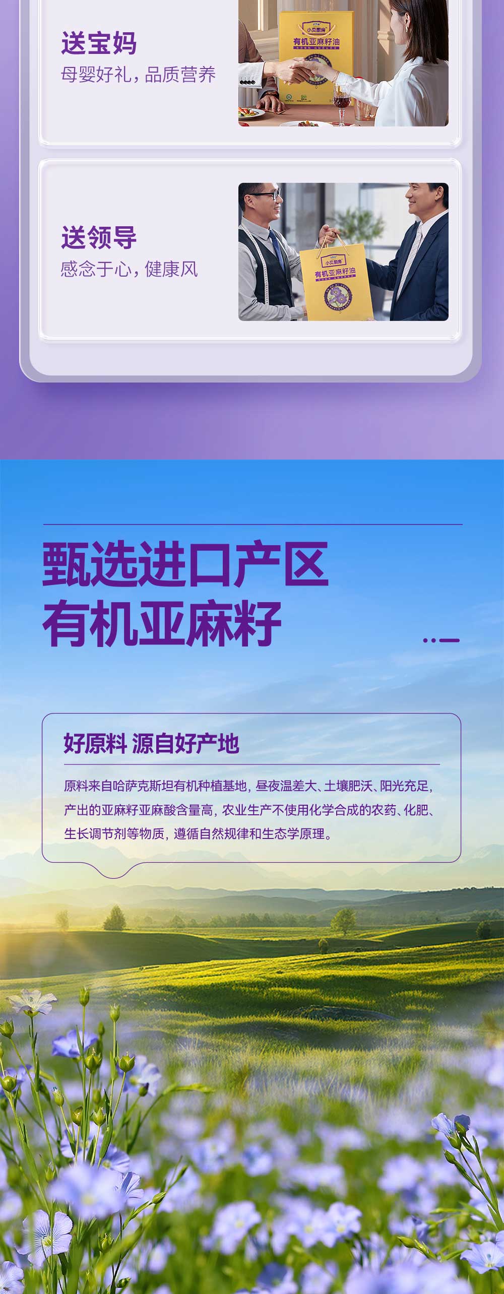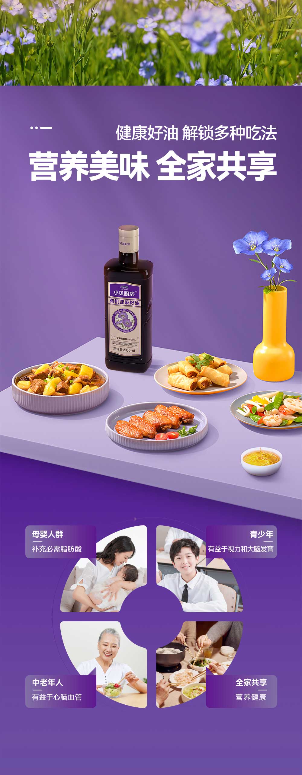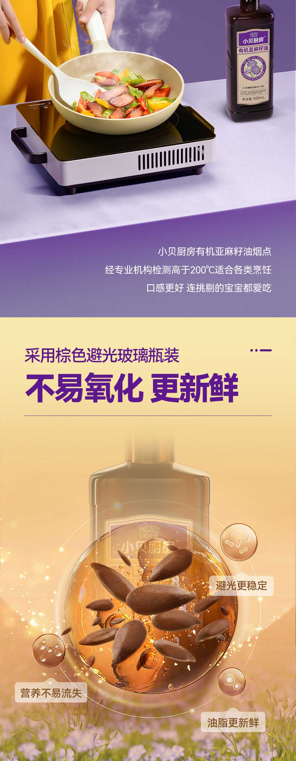 商品名称:(世星阳光)+贝蒂斯 小贝厨房有机亚麻籽油 500ml*2礼盒 赠送价值49.9元有机亚麻籽油125ml*1瓶 国家一级标准 亚麻酸大于55% 进口产区