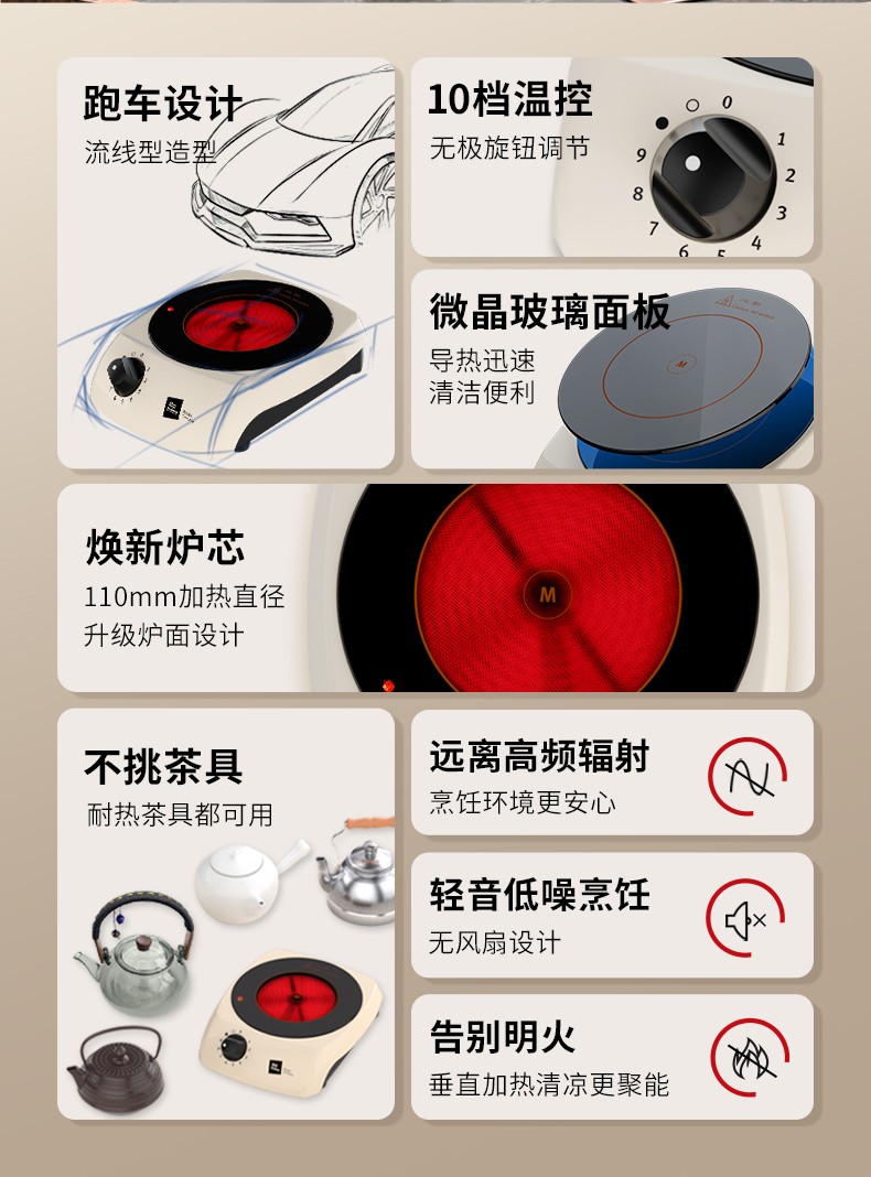 商品名称:(世星阳光)+米技(MIJI) 茶炉套装(煮茶提梁玻璃壶)微晶玻璃面板 远离高频电磁场辐射 安心呵护