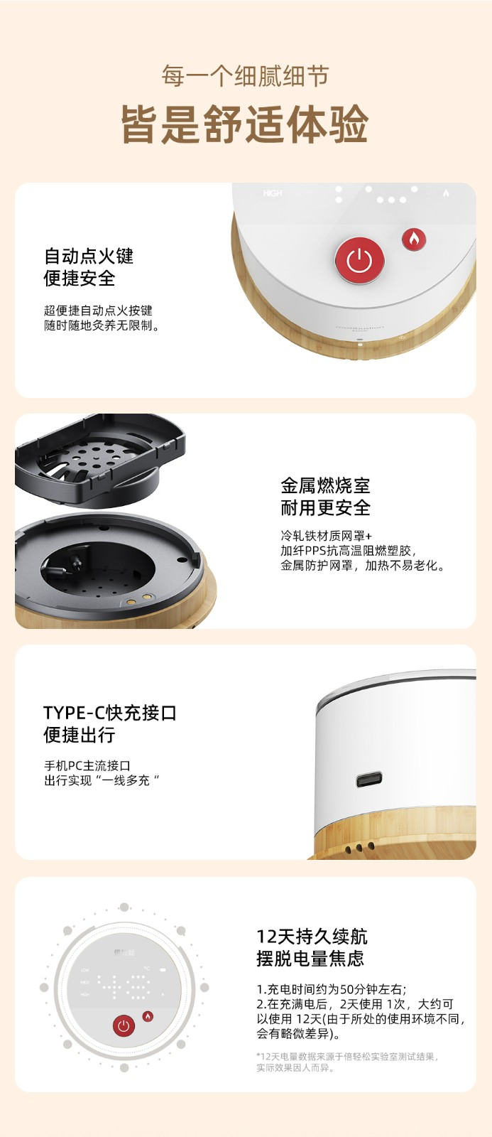 商品名称:(巨邦佑)R+倍轻松姜小竹A2标准版艾灸盒 月白色 家用便携无烟电子艾灸盒艾灸仪 送男女朋友生日新年礼物